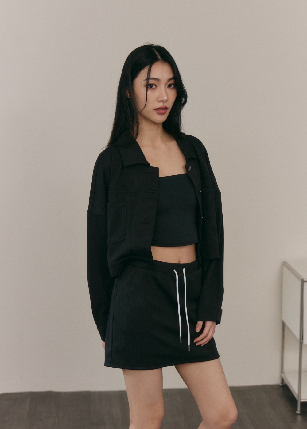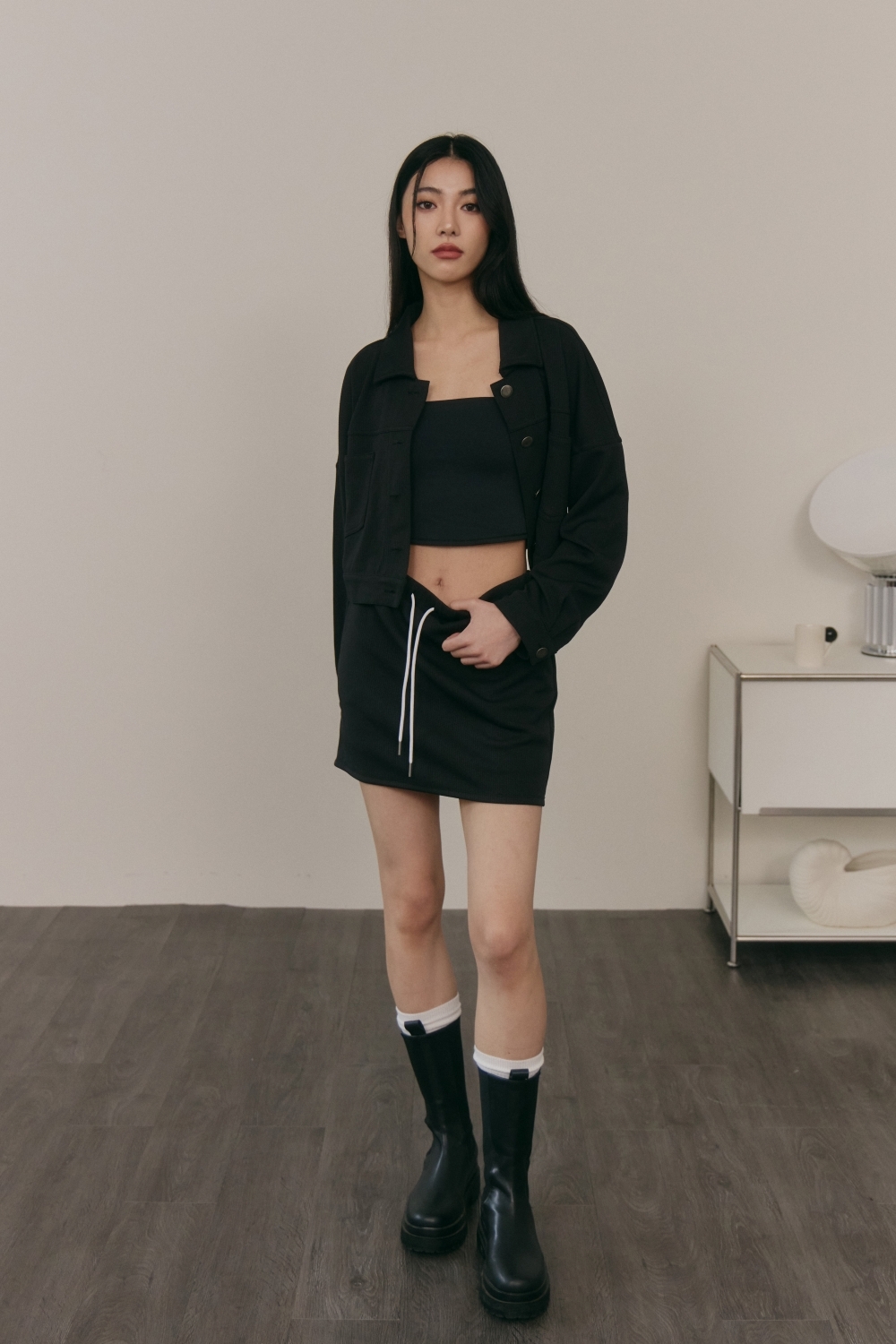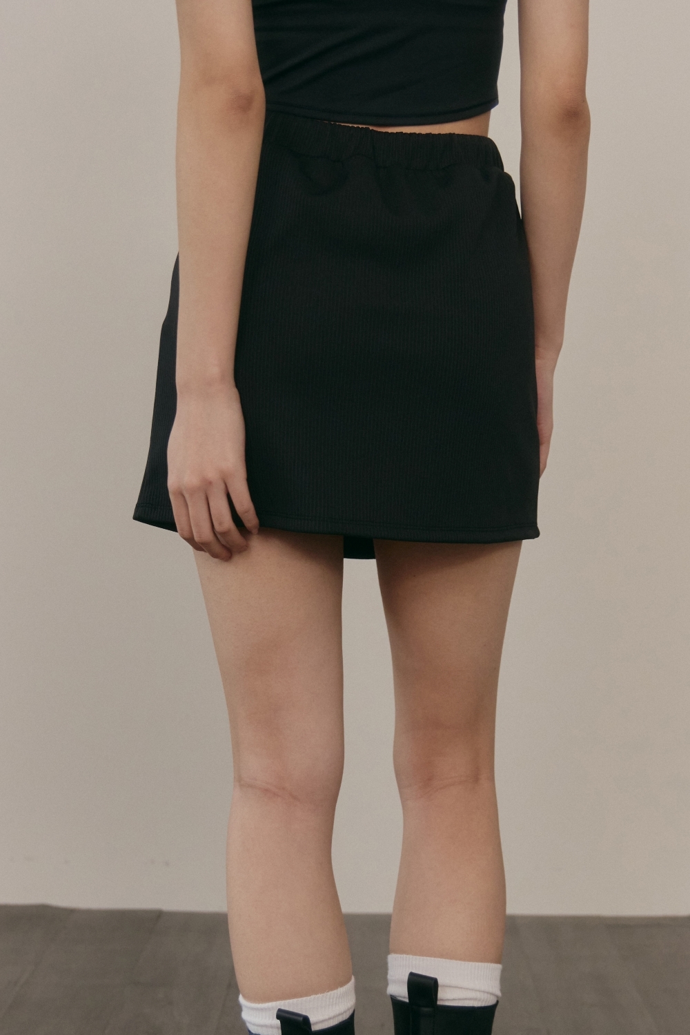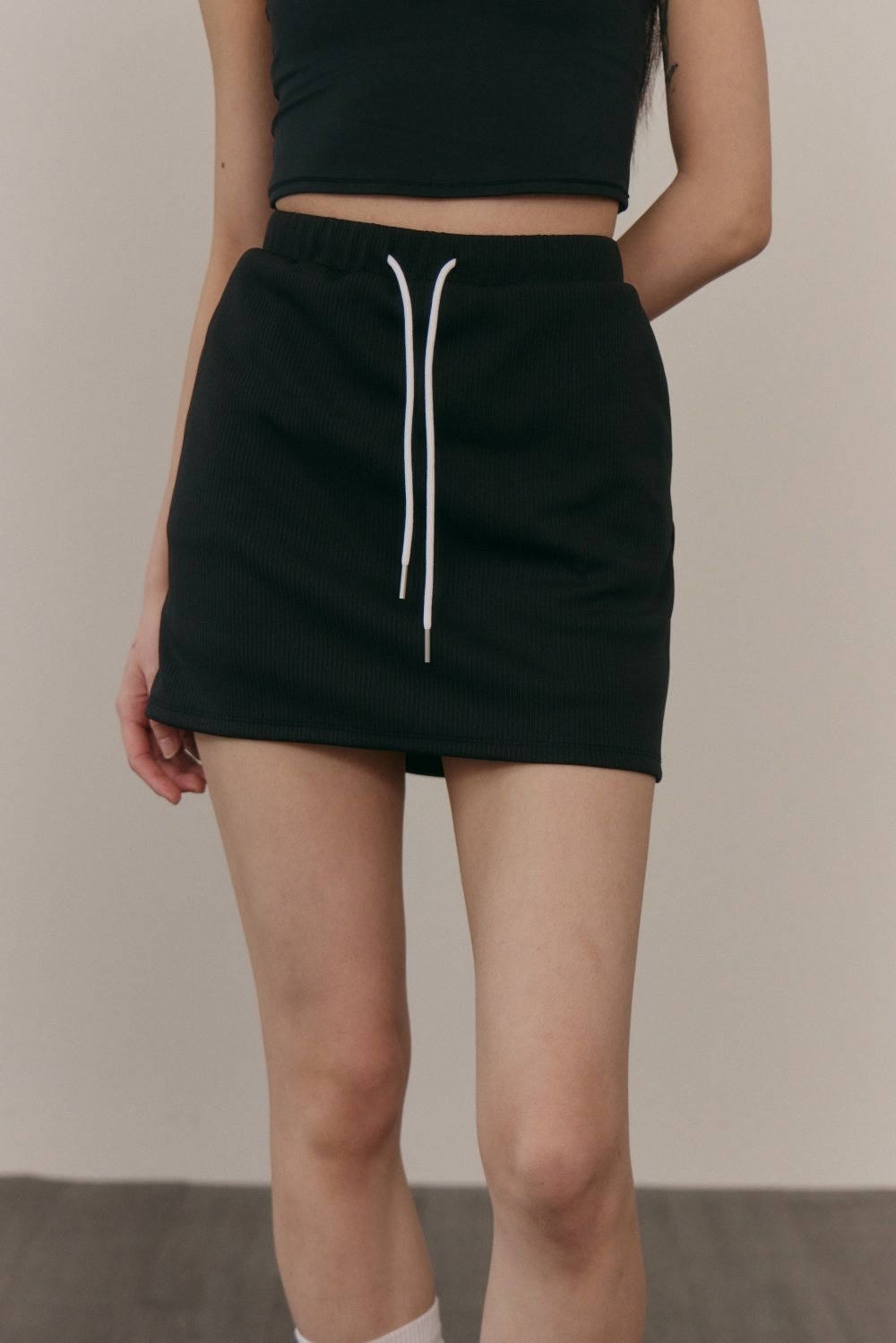 撞色抽繩褲裙- 黑
