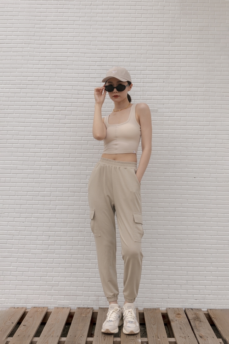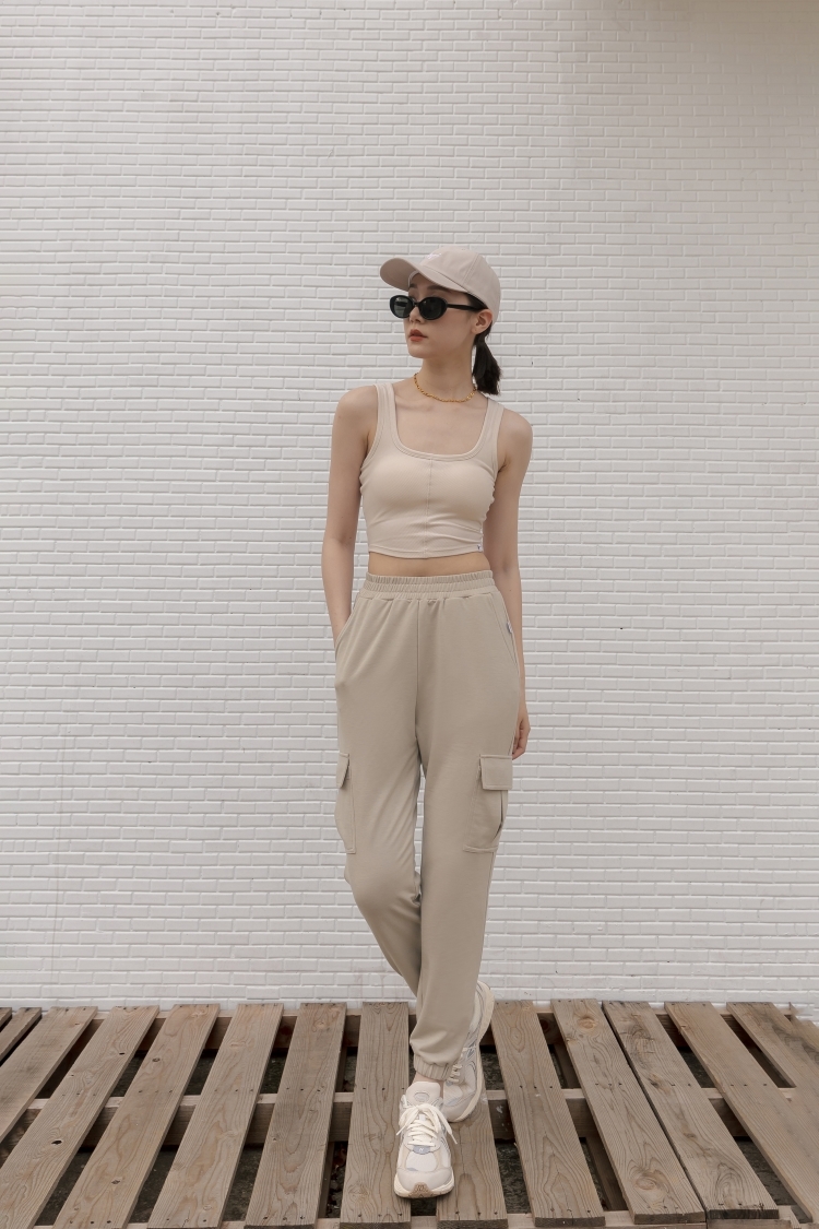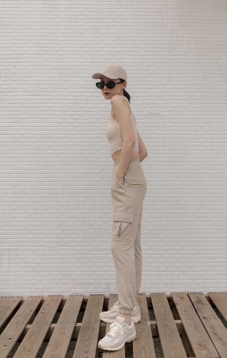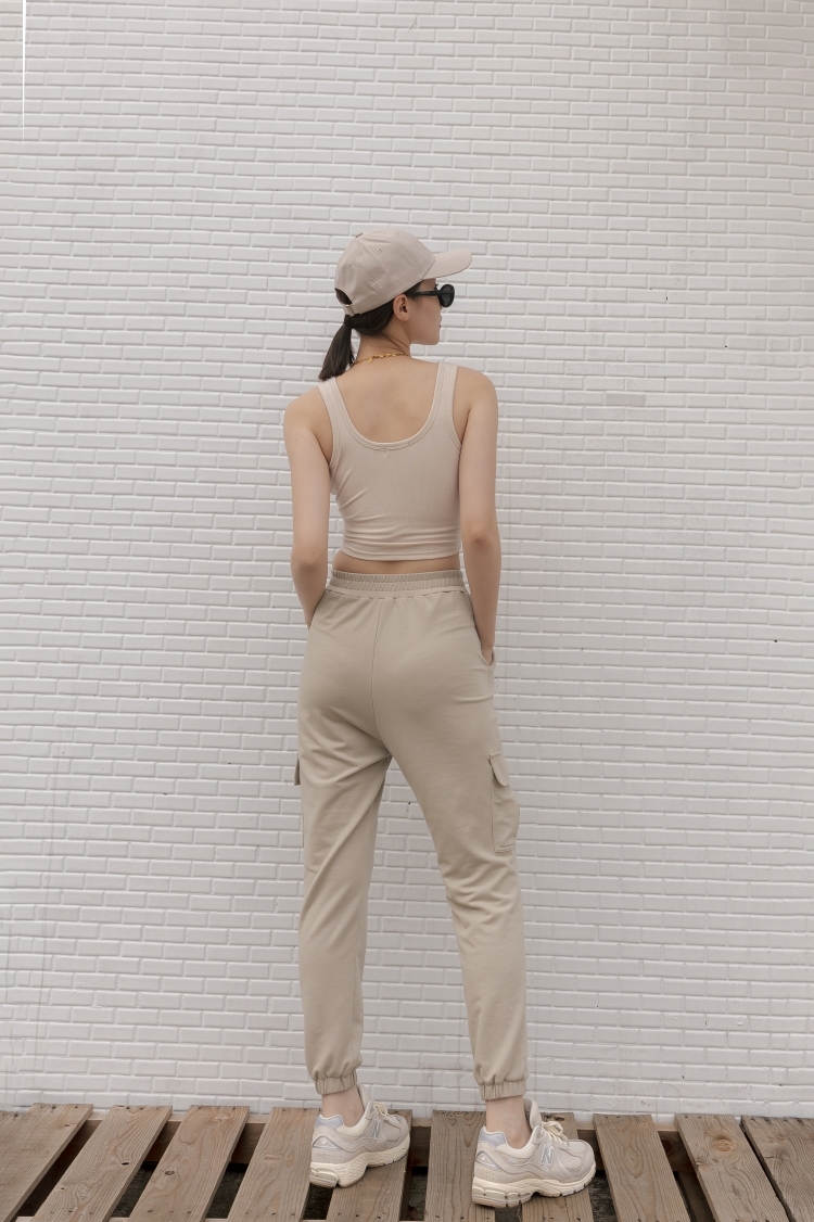 -褲腳下擺縮口鬆緊帶設計