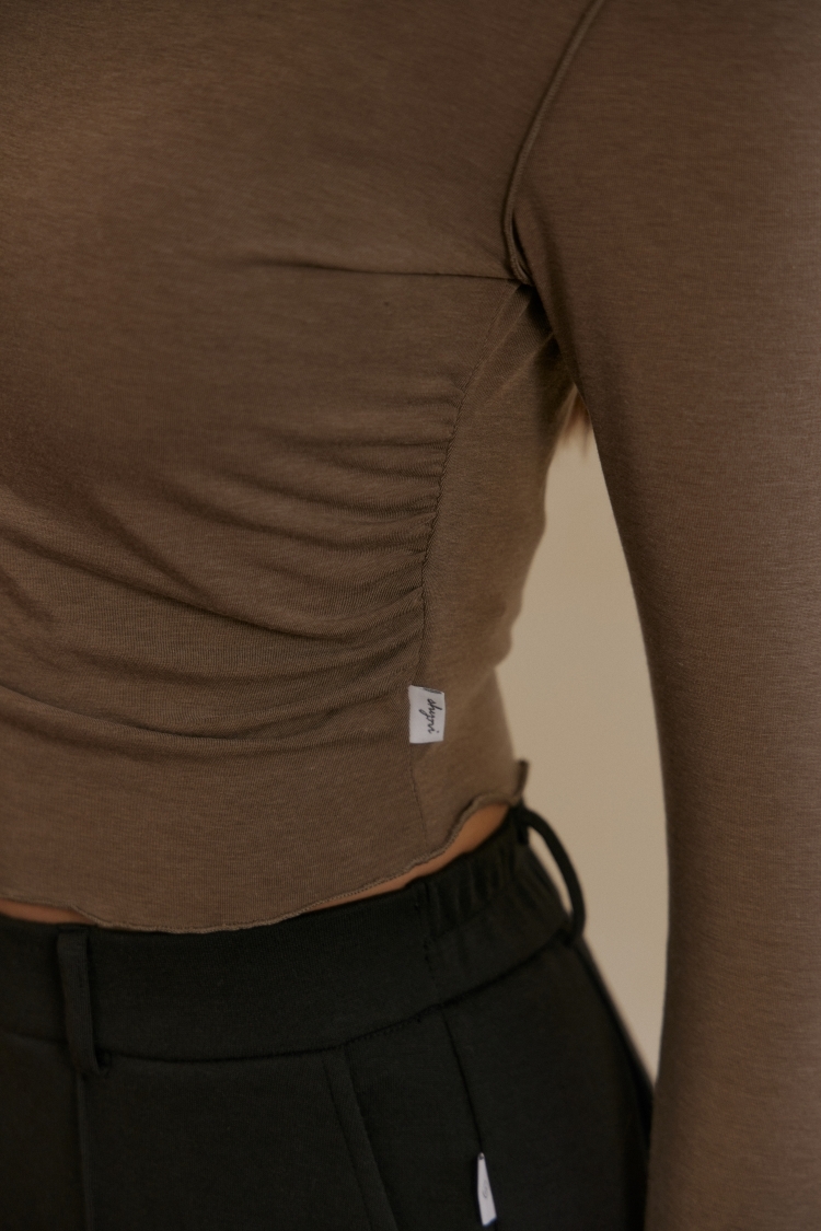 落袖木耳捲邊上衣- 咖啡