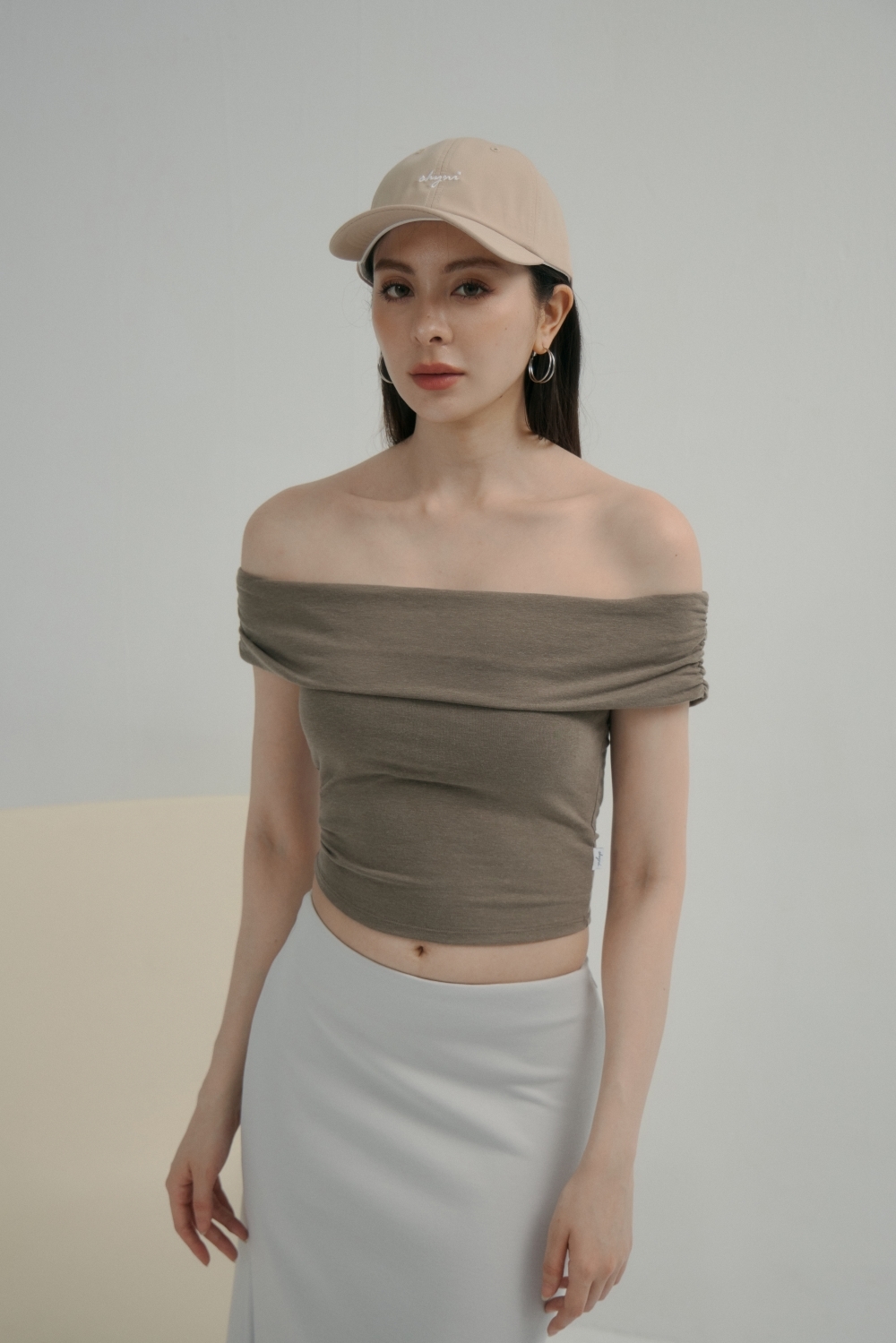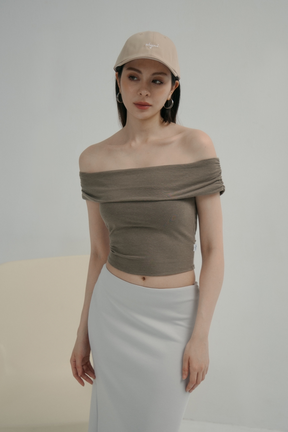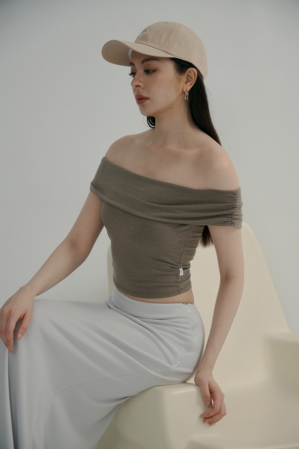 法式一字領BRA TOP上衣- 咖啡