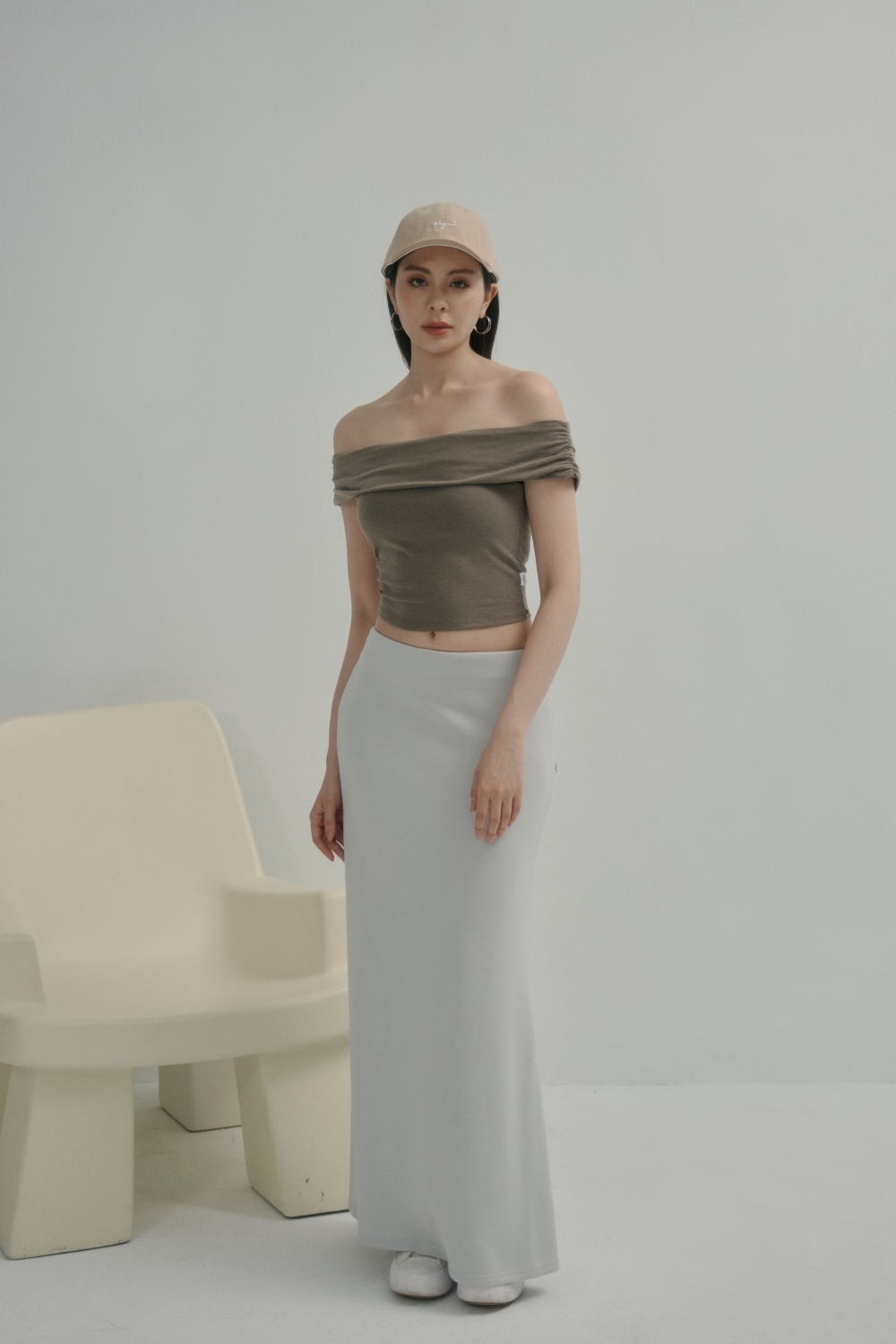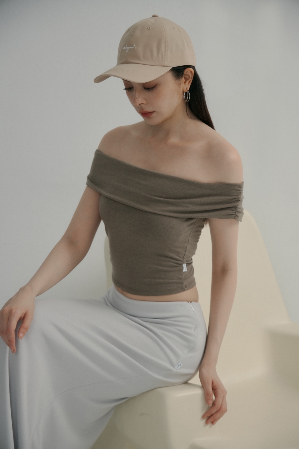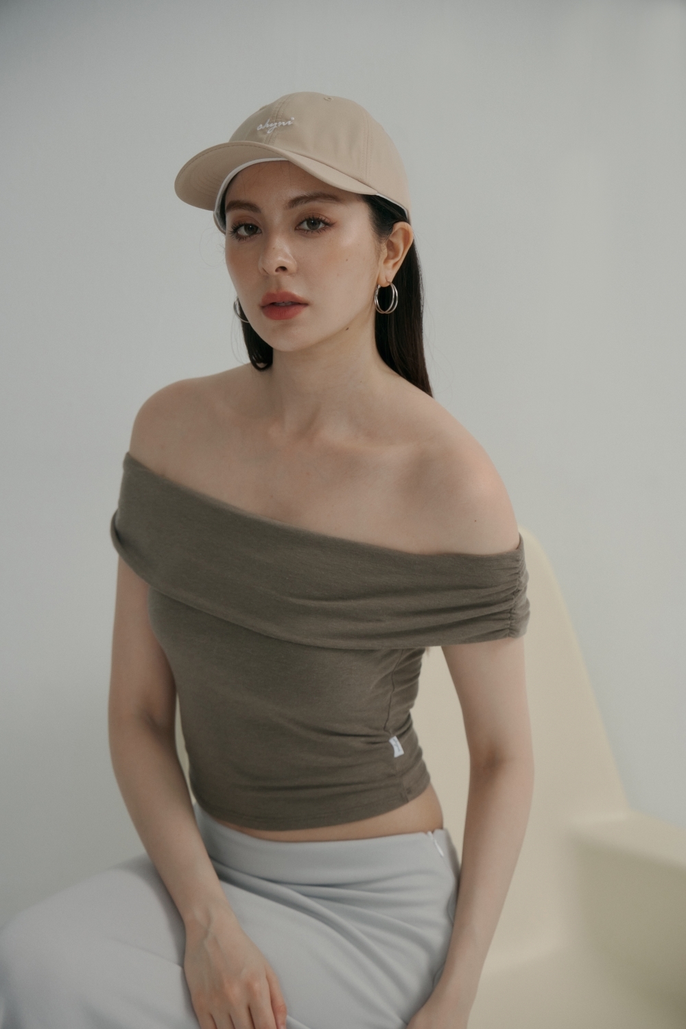 法式一字領BRA TOP上衣- 咖啡