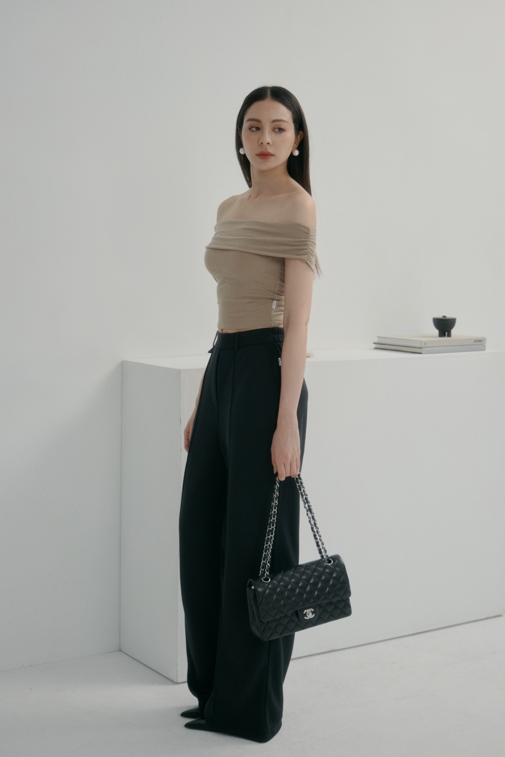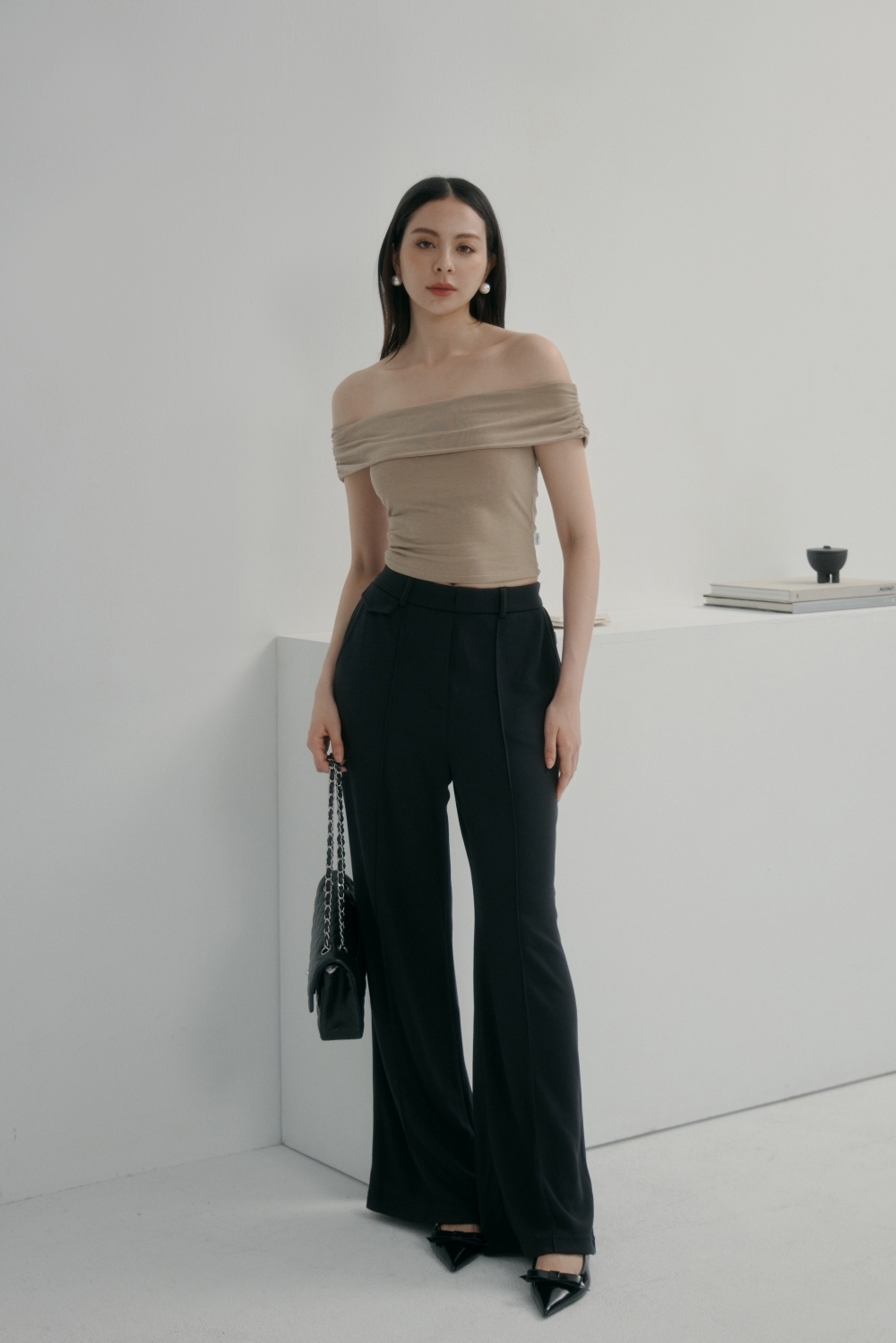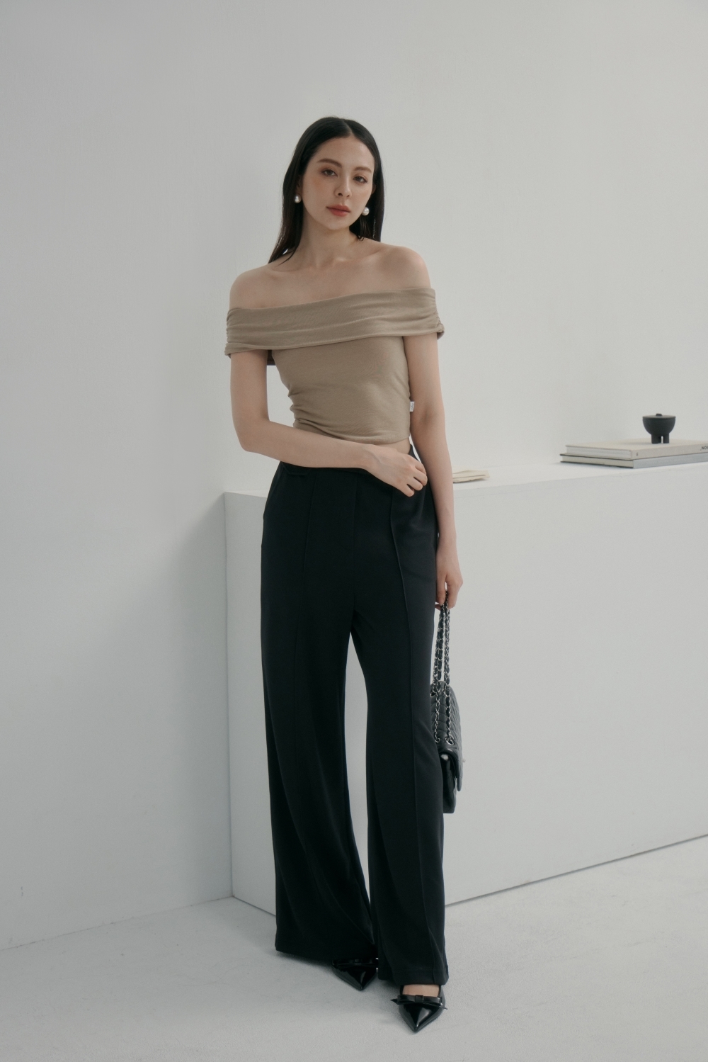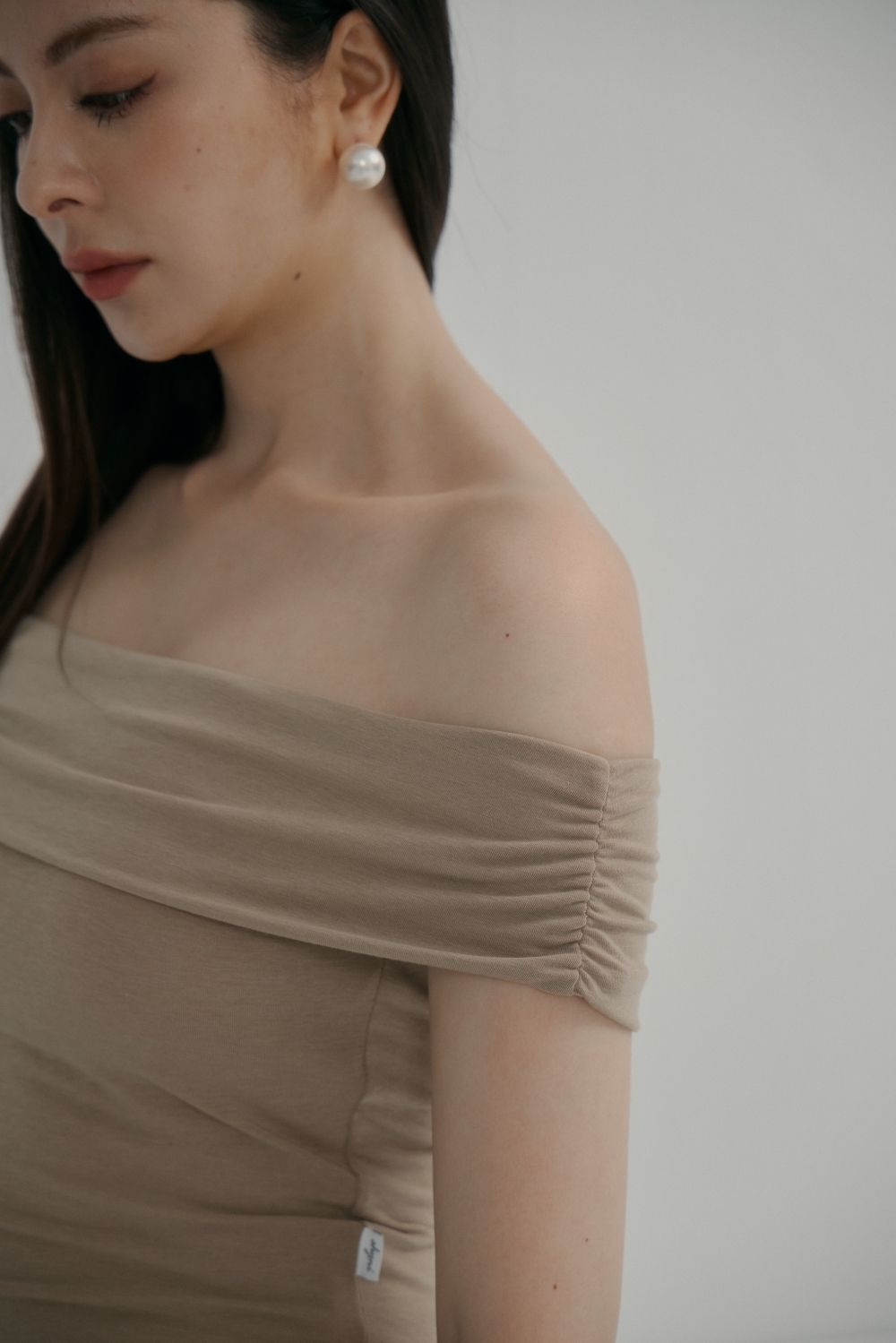 法式一字領BRA TOP上衣- 卡其