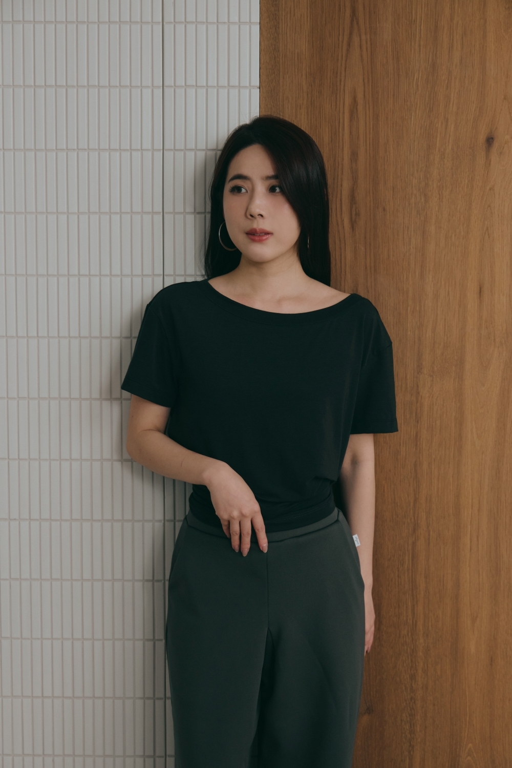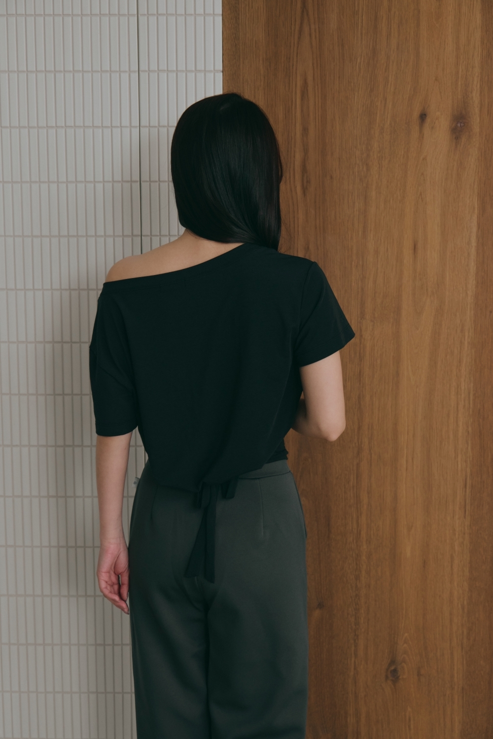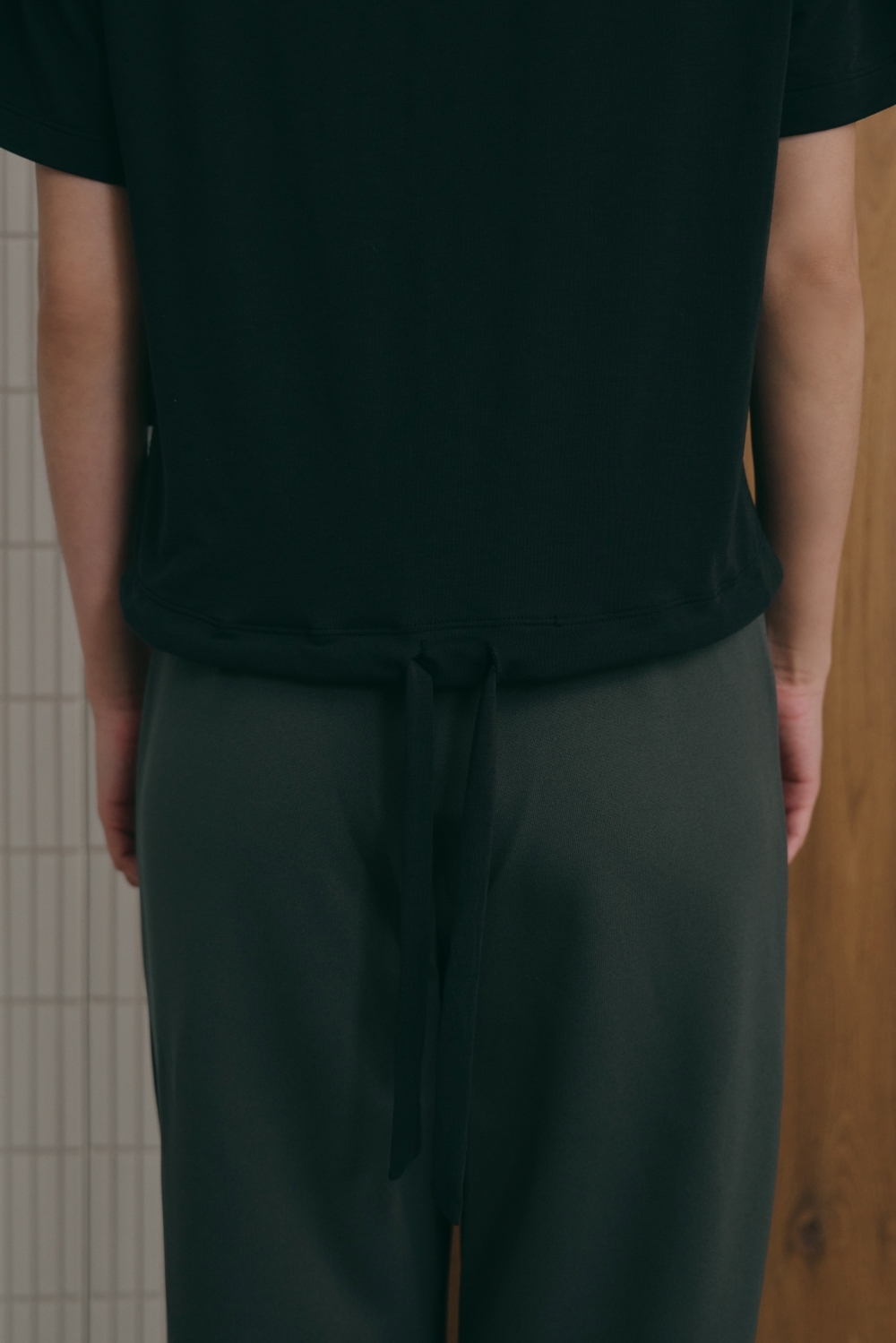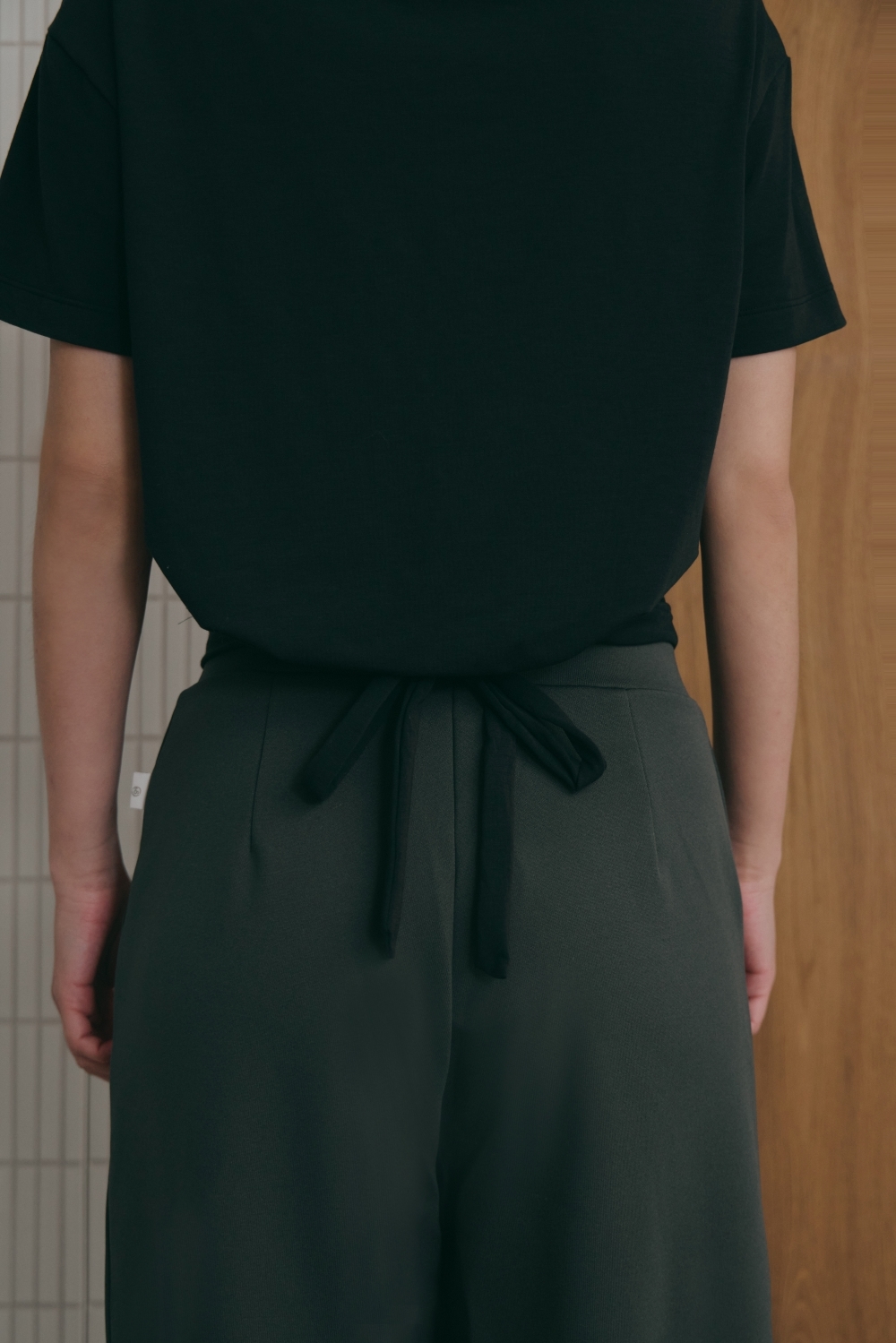 鬆弛綁帶寬鬆TEE- 黑