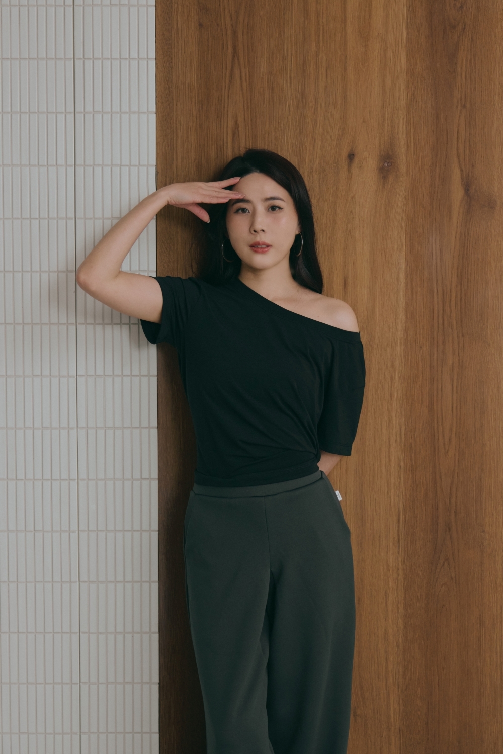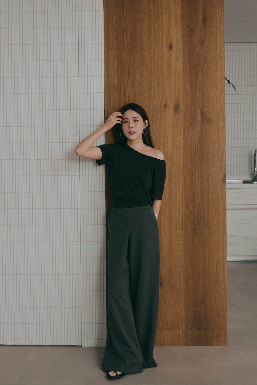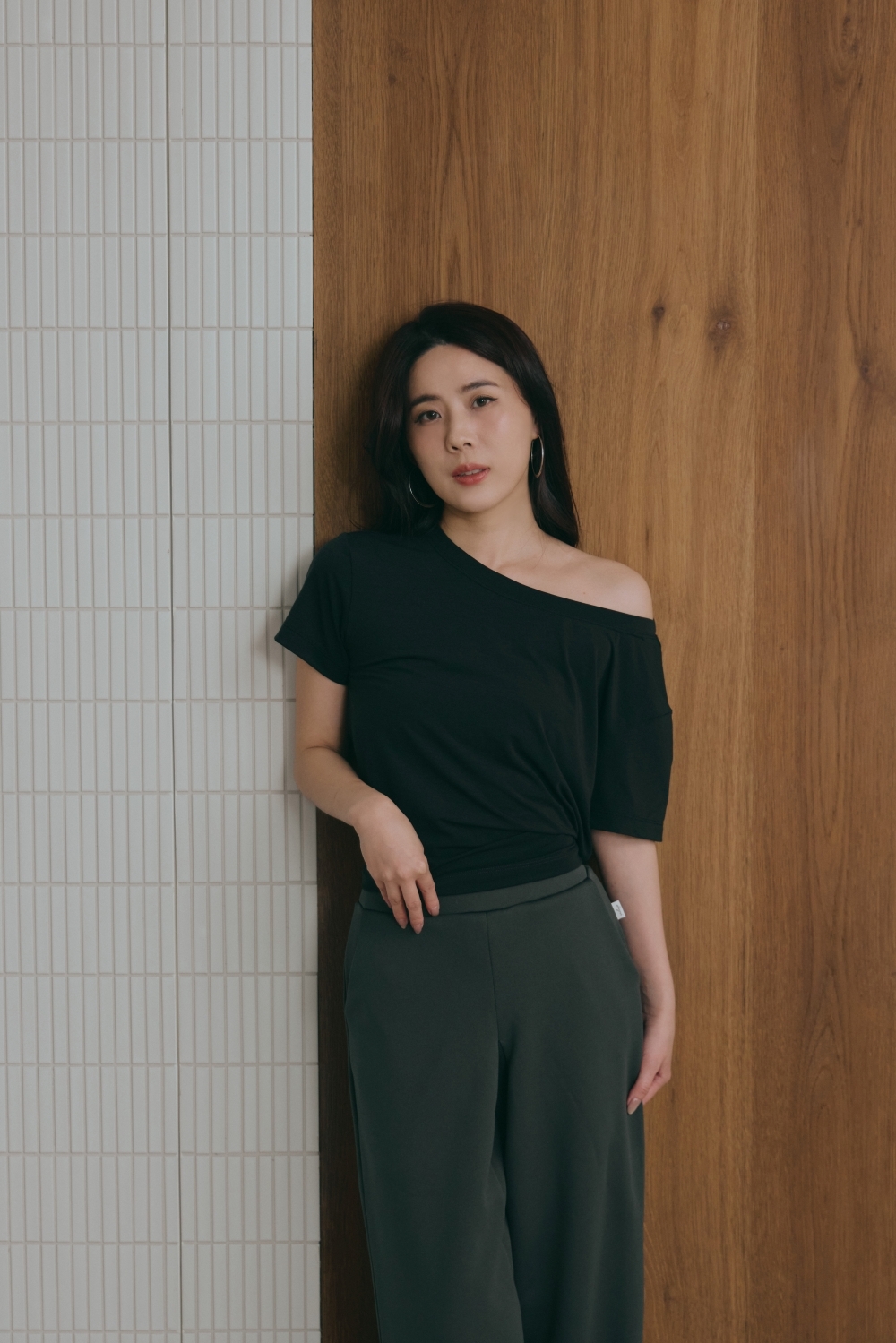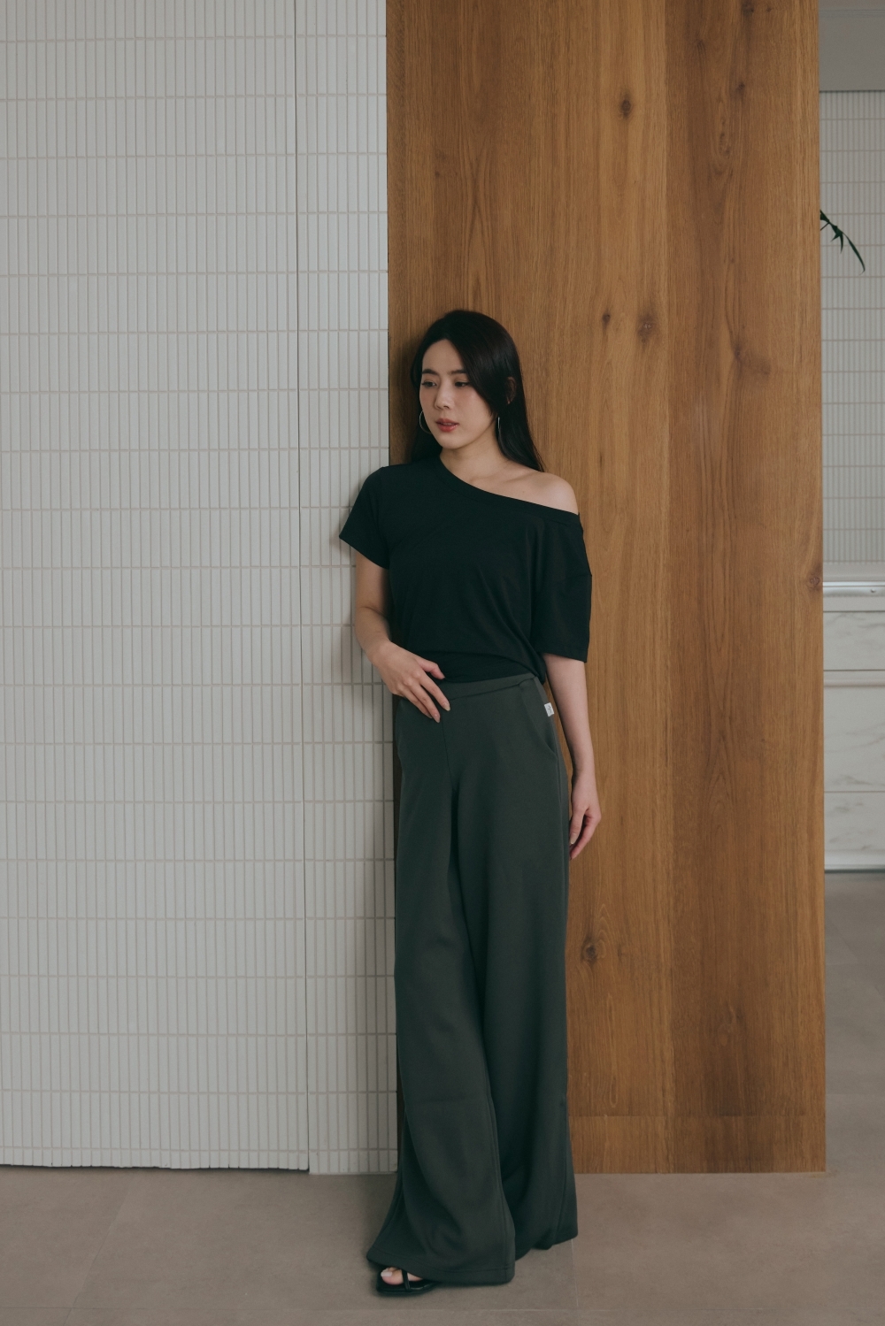 鬆弛綁帶寬鬆TEE- 黑