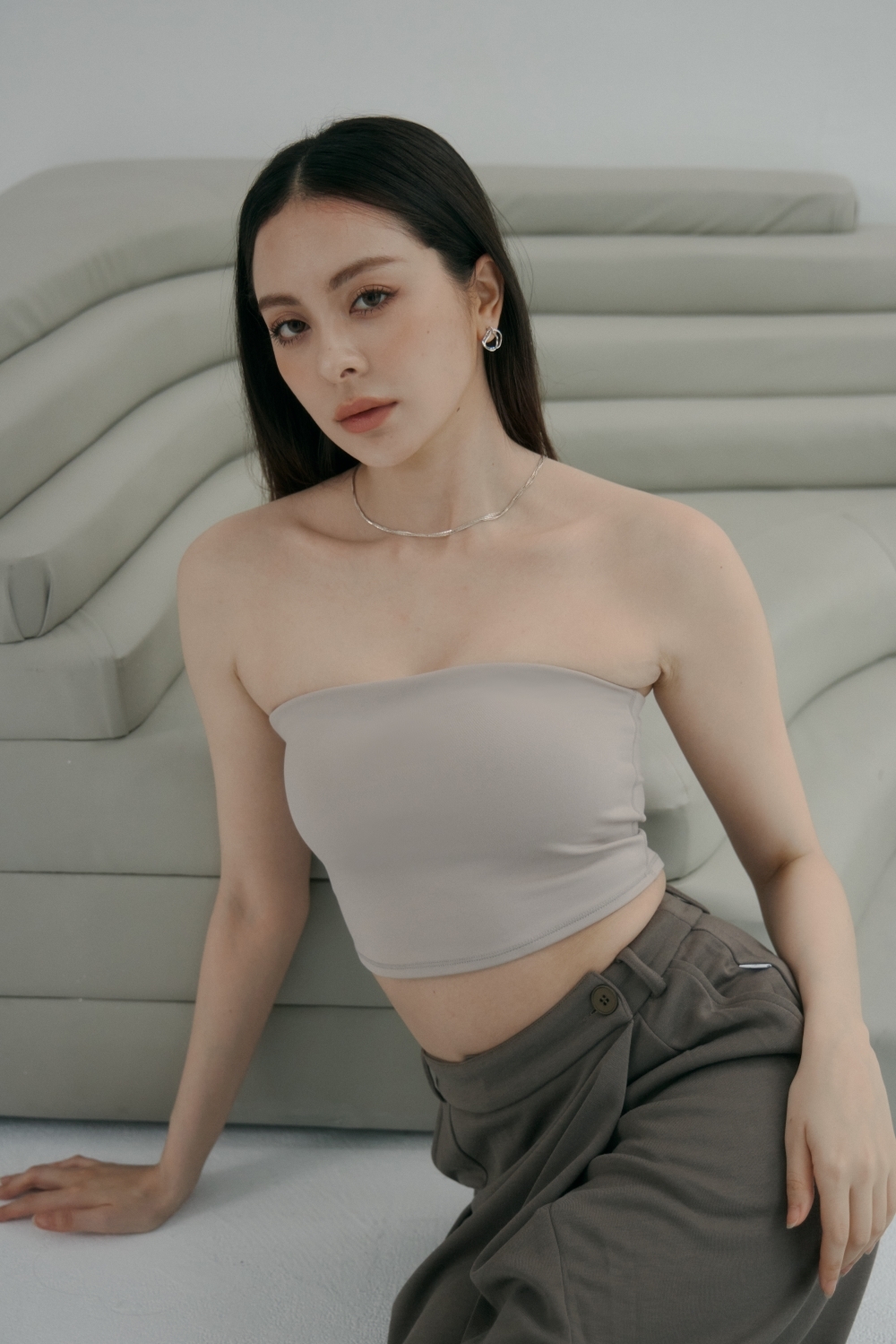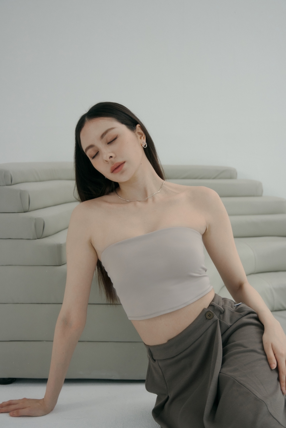 2 Ways 必備中長版平口BRA TOP- 沙色