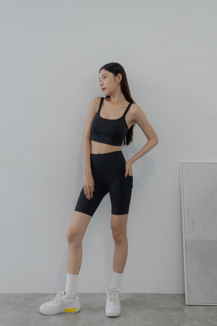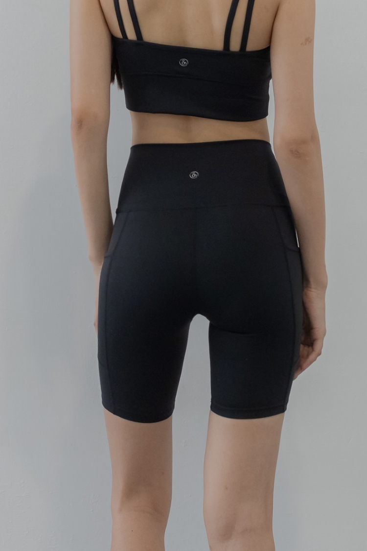7 " Shyni Side Pockets Bike Shorts- 正黑