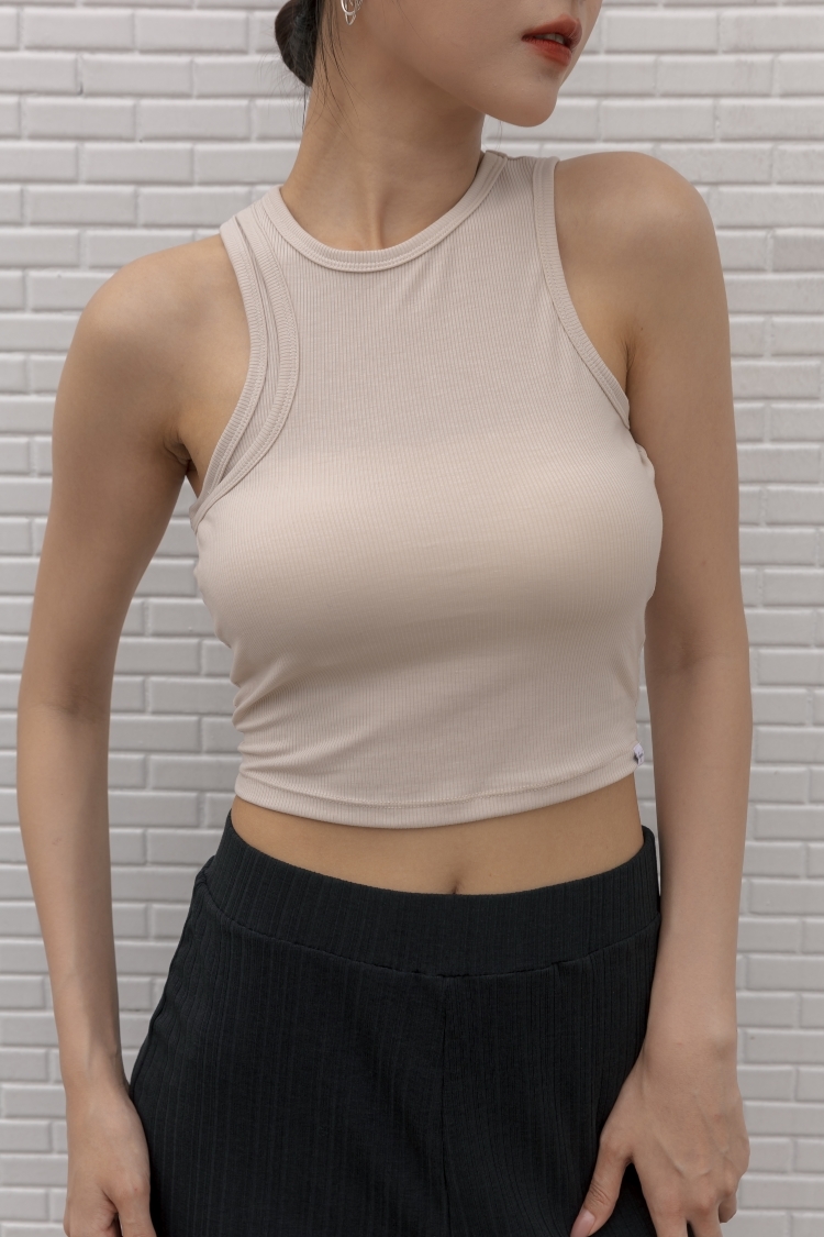 羅紋設計感削肩背心- 淺米