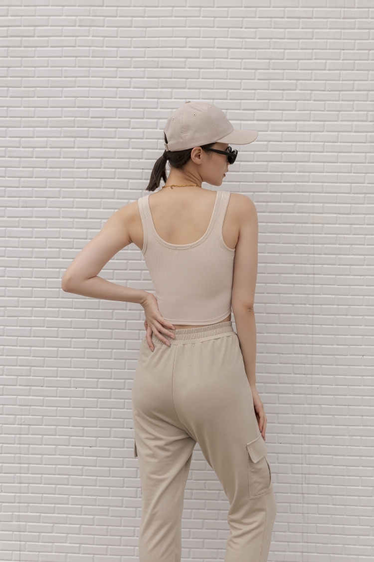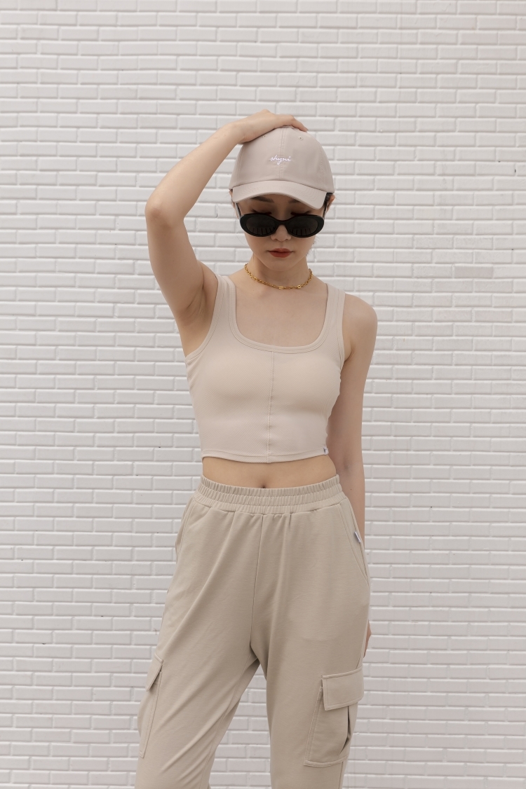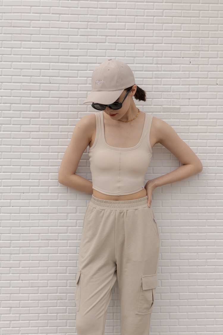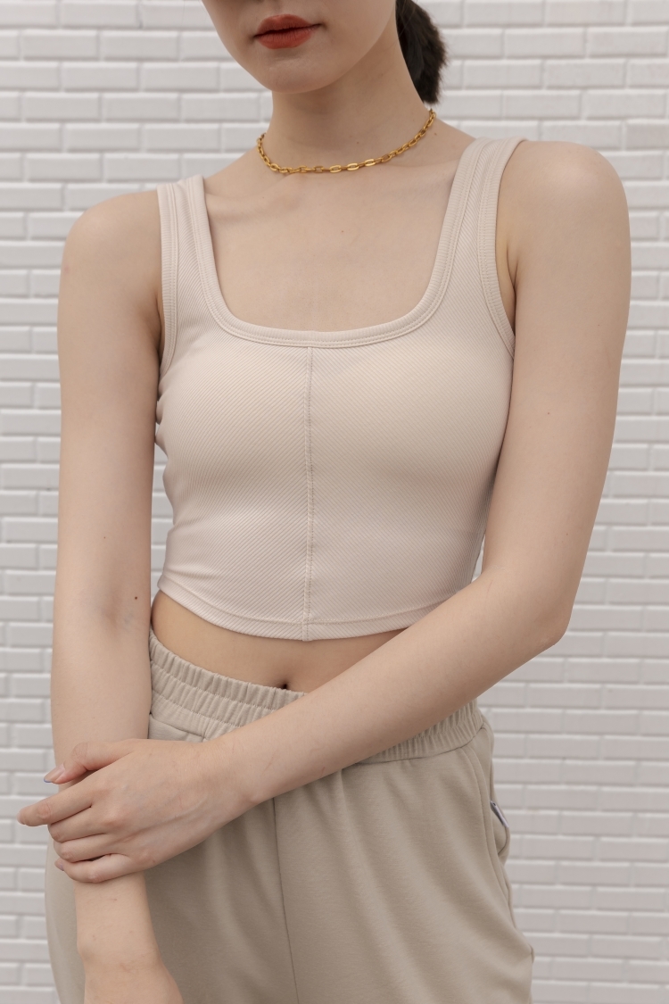 羅紋BRA TOP 挖背背心- 淺米