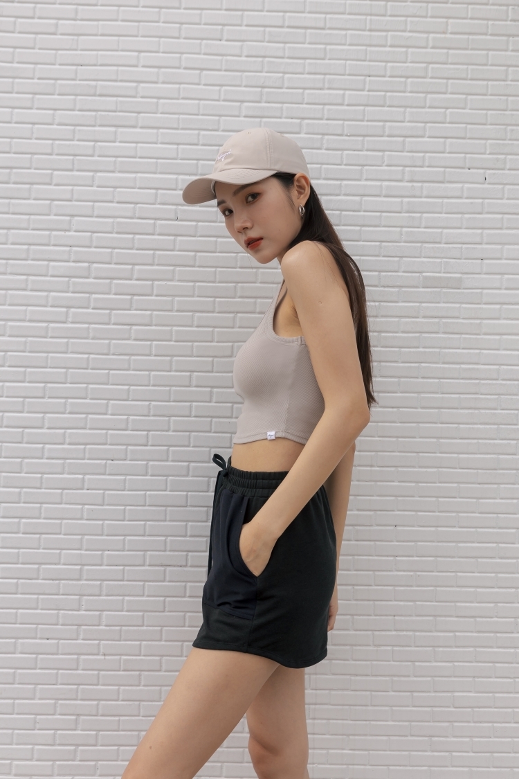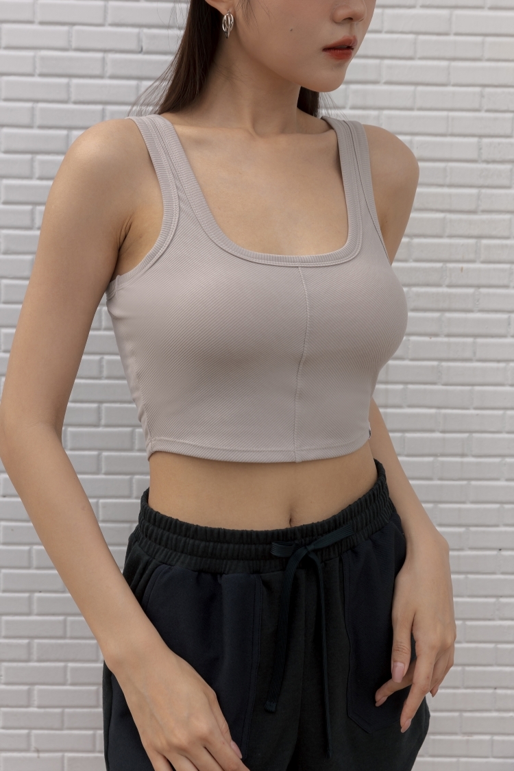 羅紋BRA TOP 挖背背心- 米杏