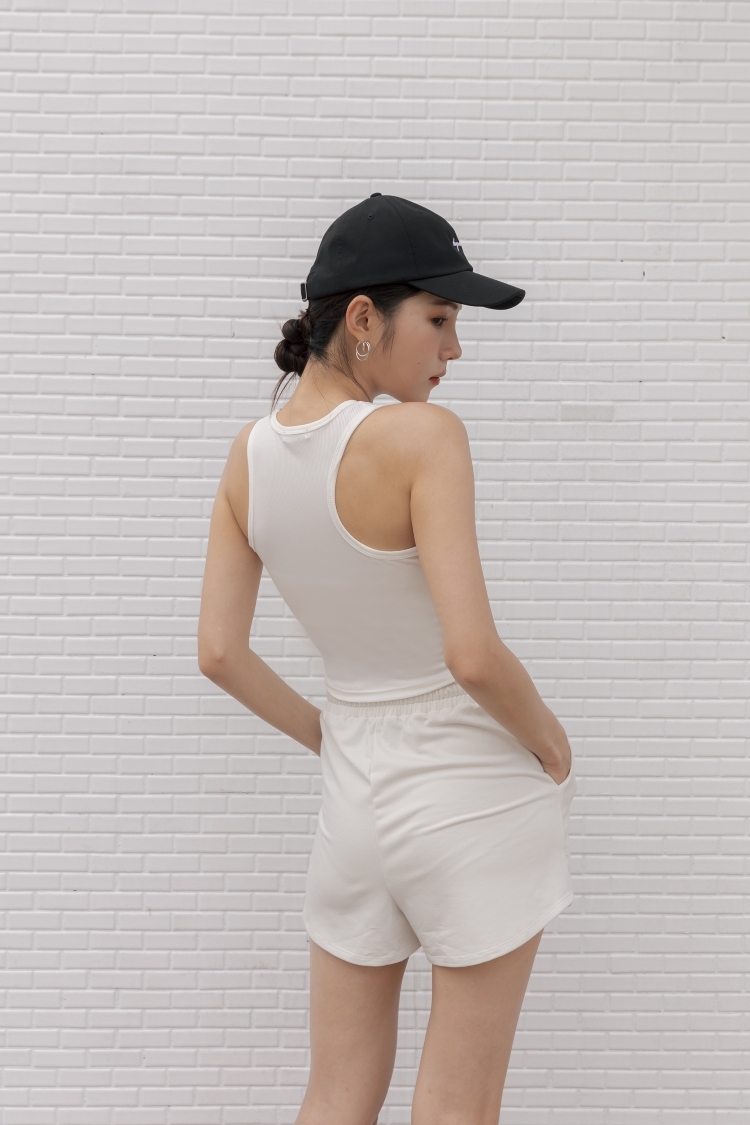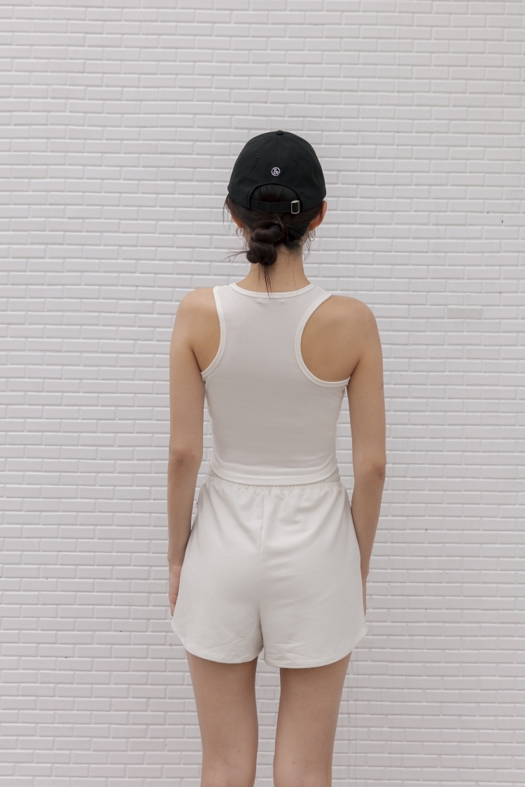 羅紋設計感削肩背心- 白
