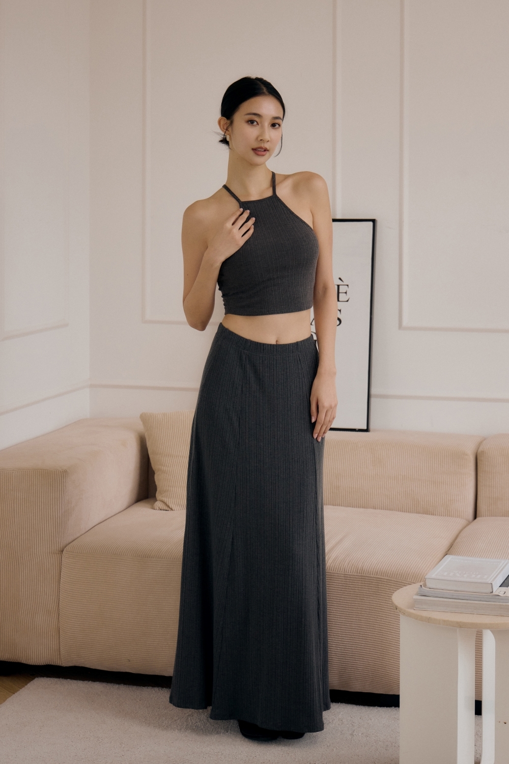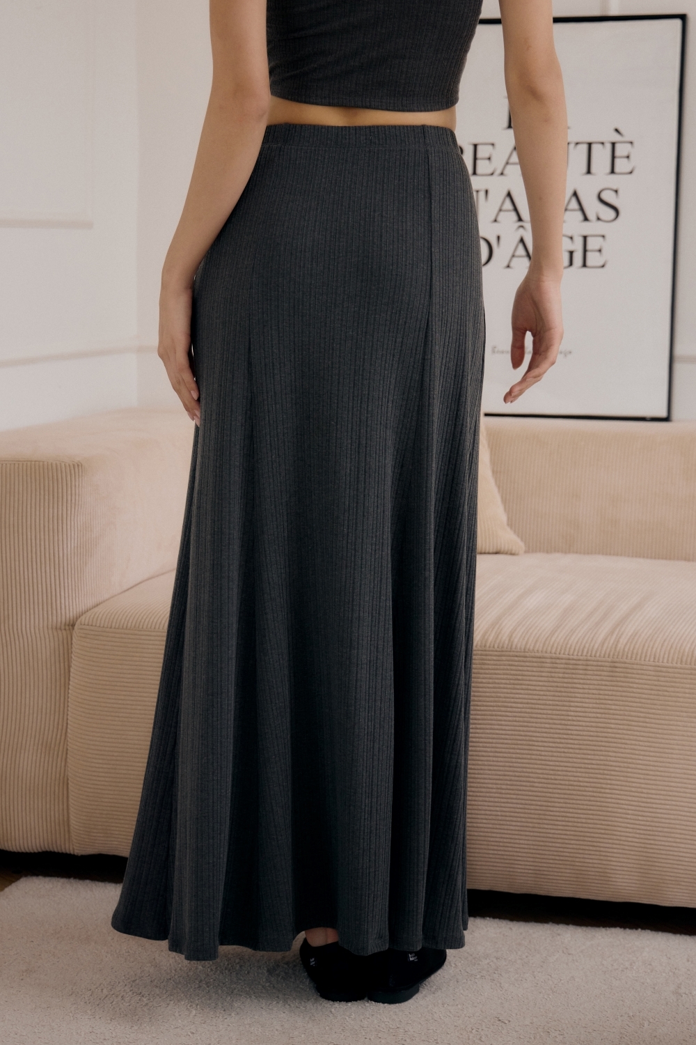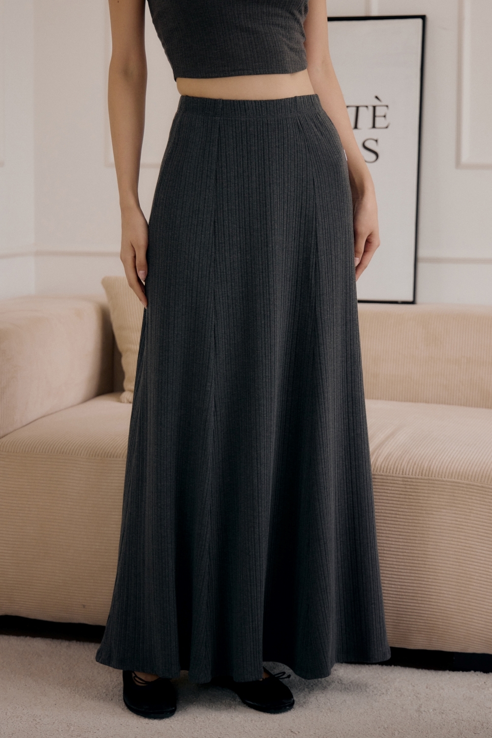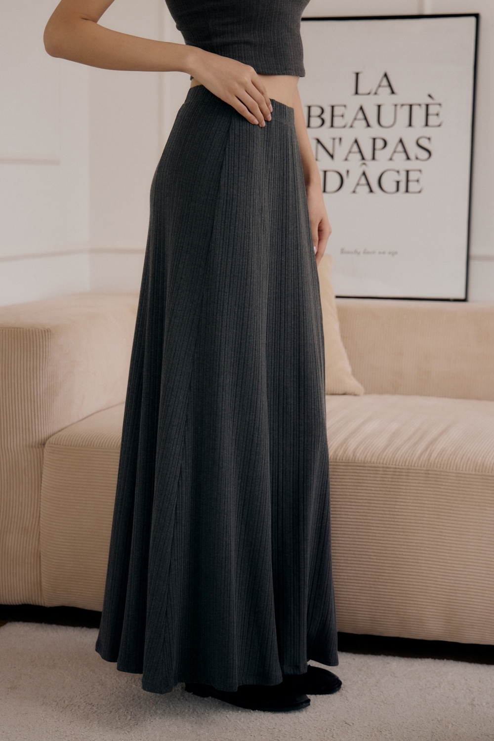 法式傘擺針織長裙- 深灰