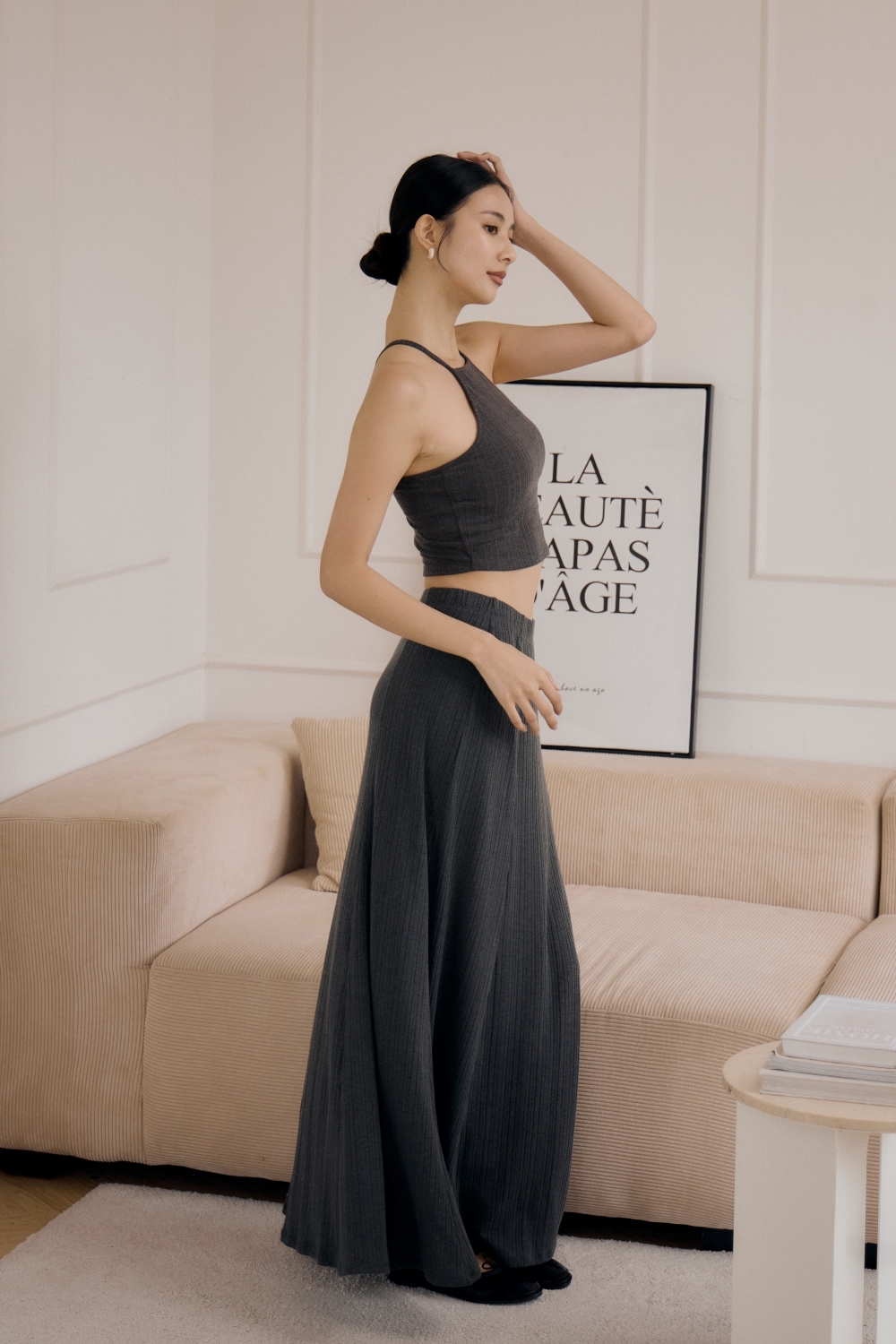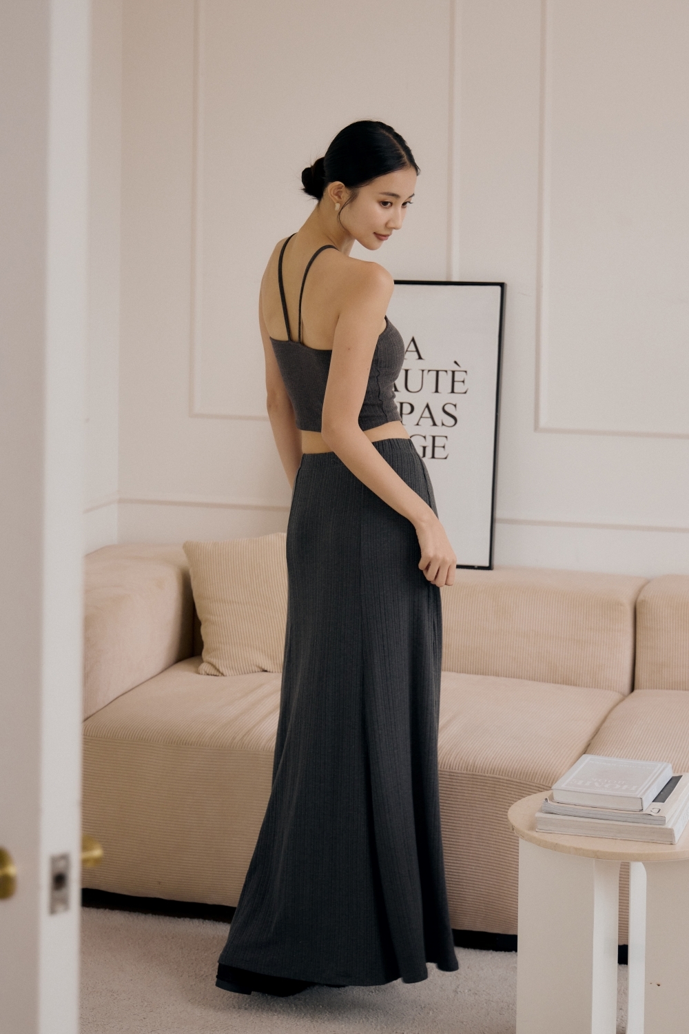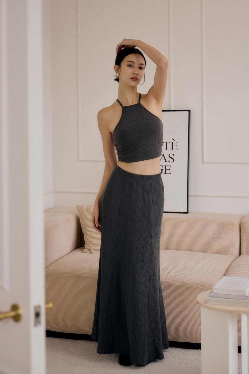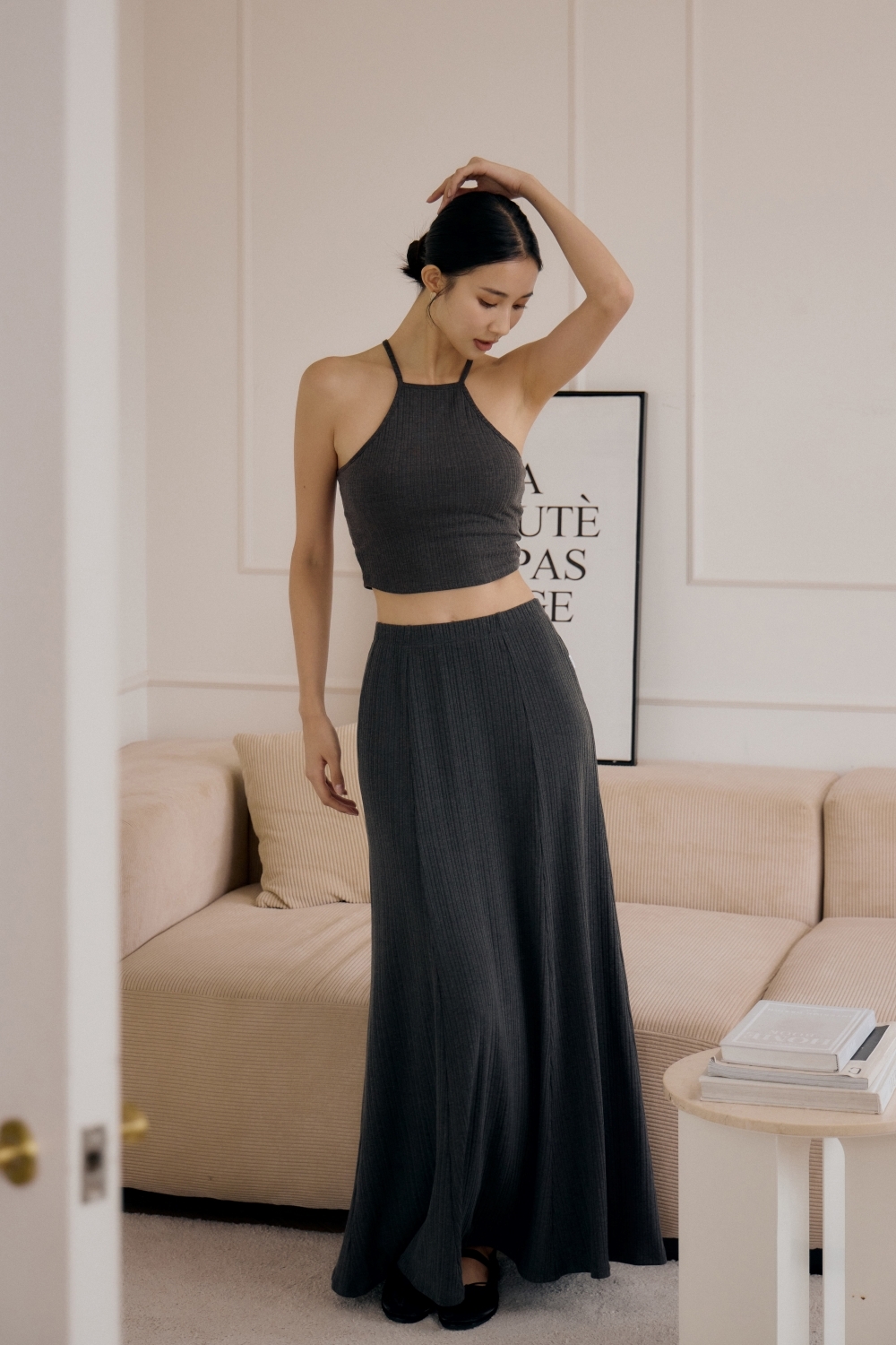 法式傘擺針織長裙- 深灰
