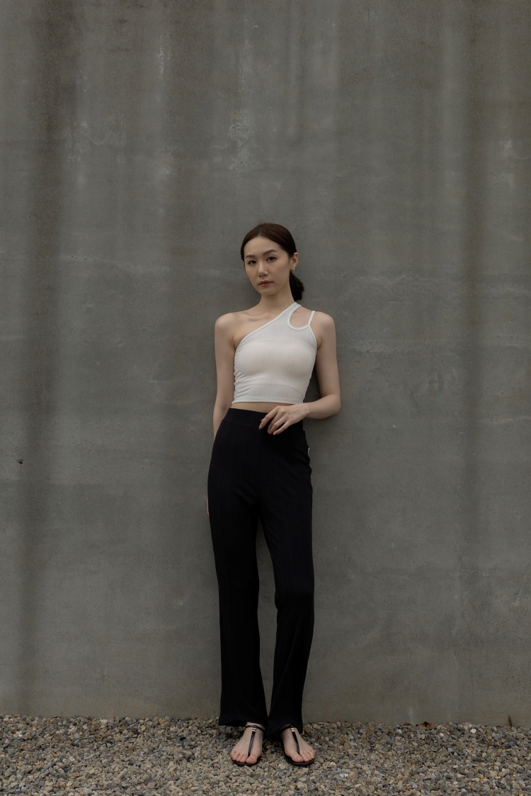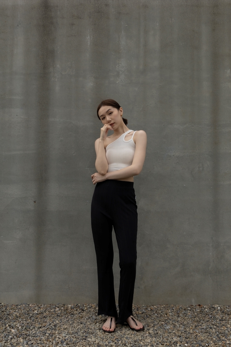 前短後長修身長褲- 黑