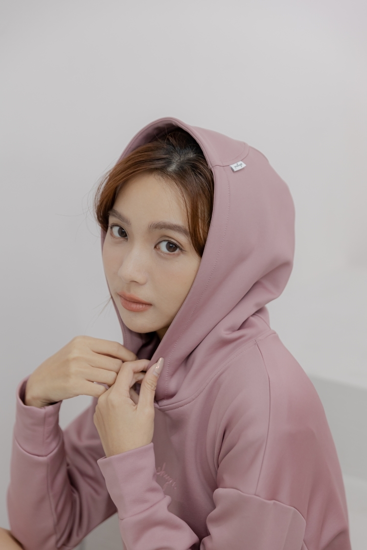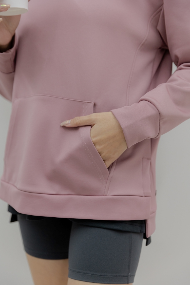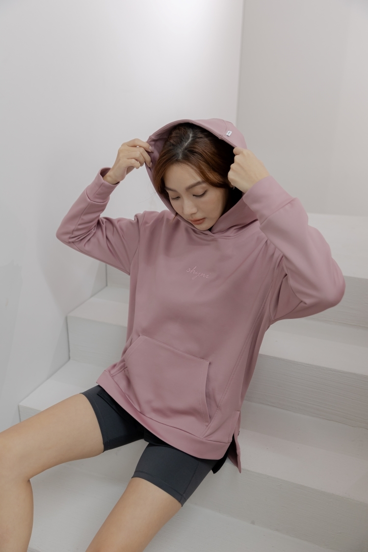 中長版內刷毛刺繡Hoodie- Dusty Rose