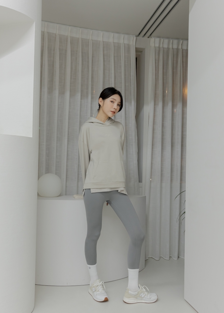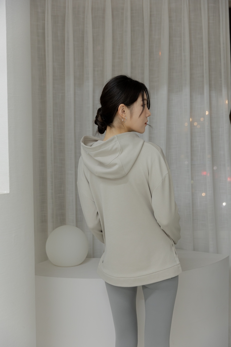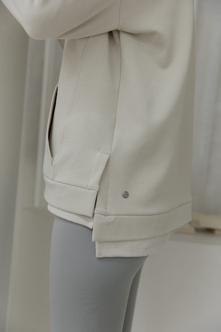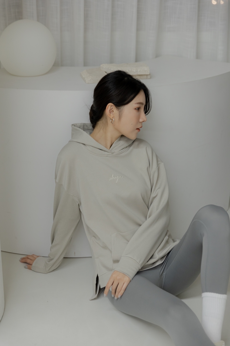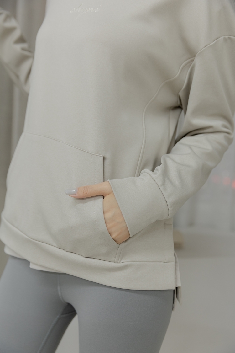 中長版內刷毛刺繡Hoodie- Sand Heather