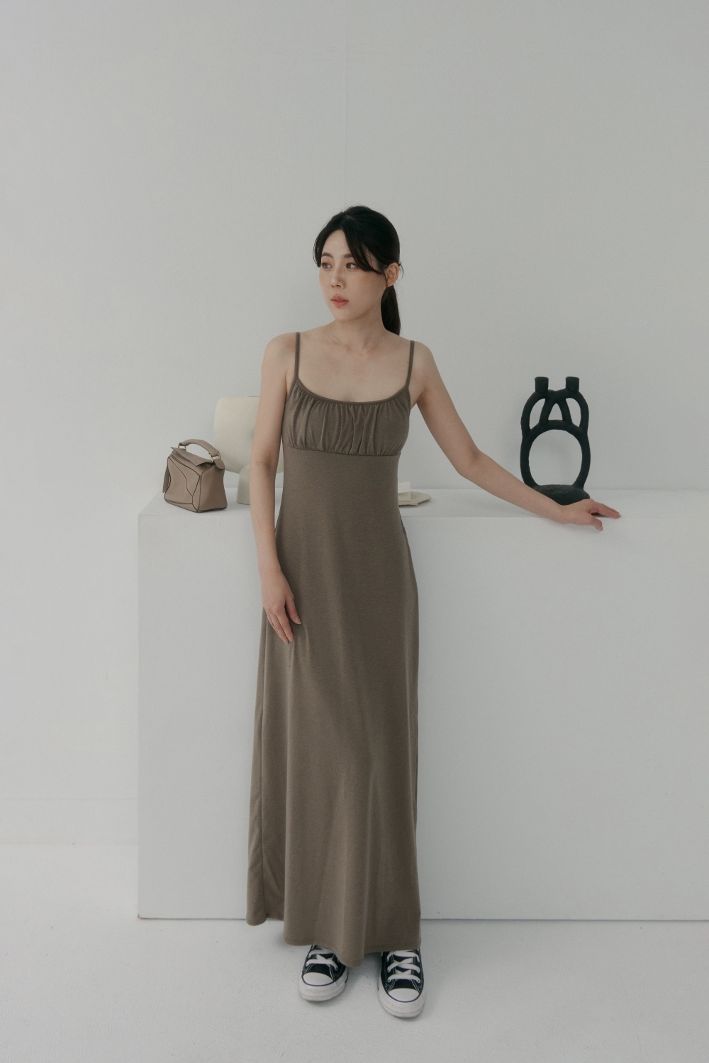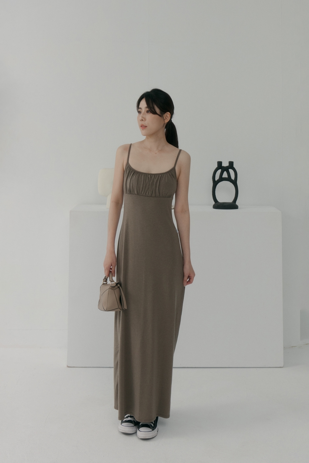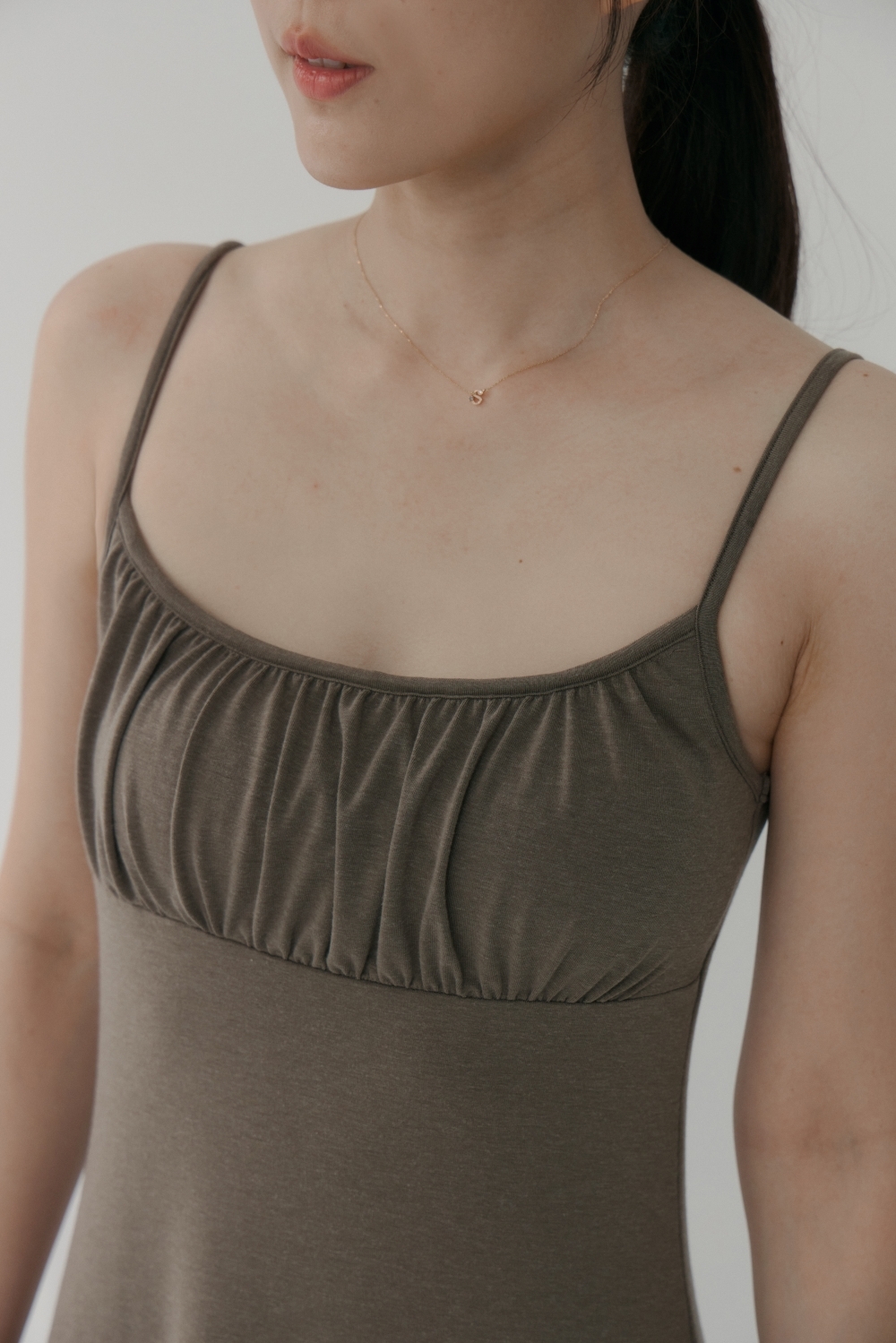 法式前胸抓皺BRA TOP長洋- 咖啡