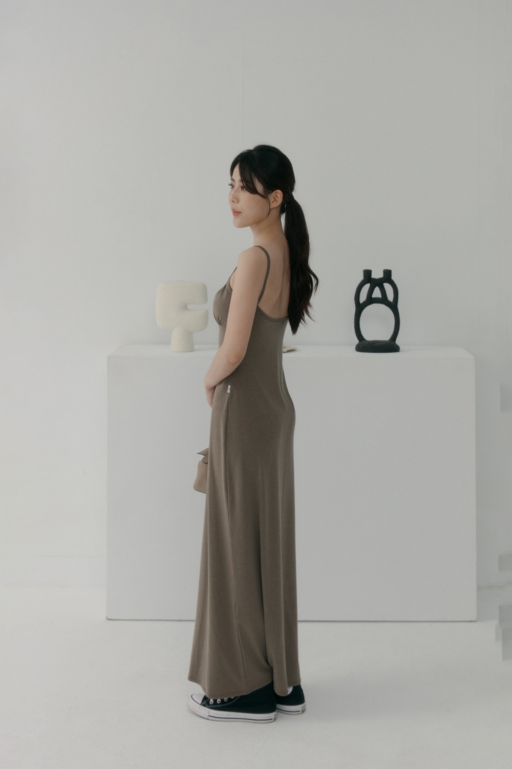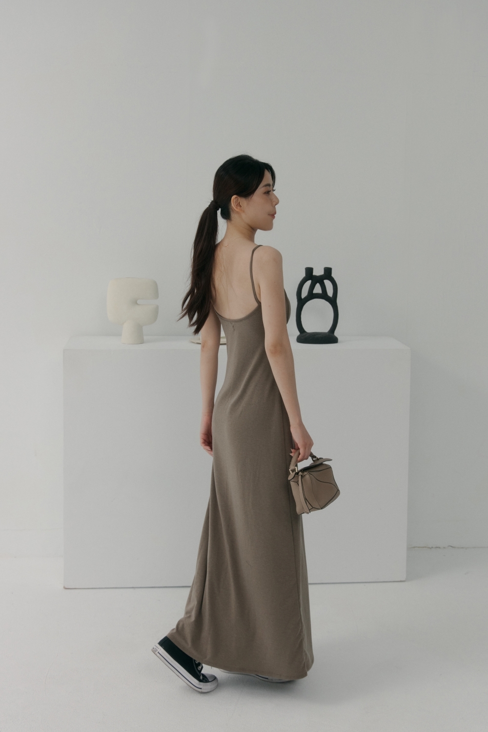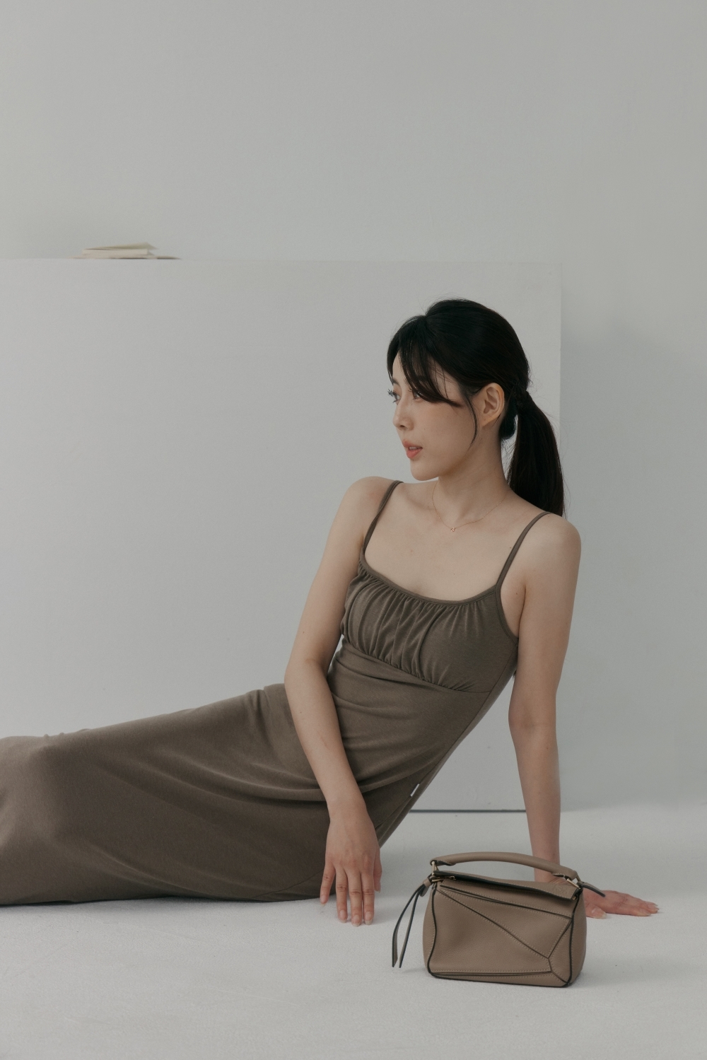法式前胸抓皺BRA TOP長洋- 咖啡