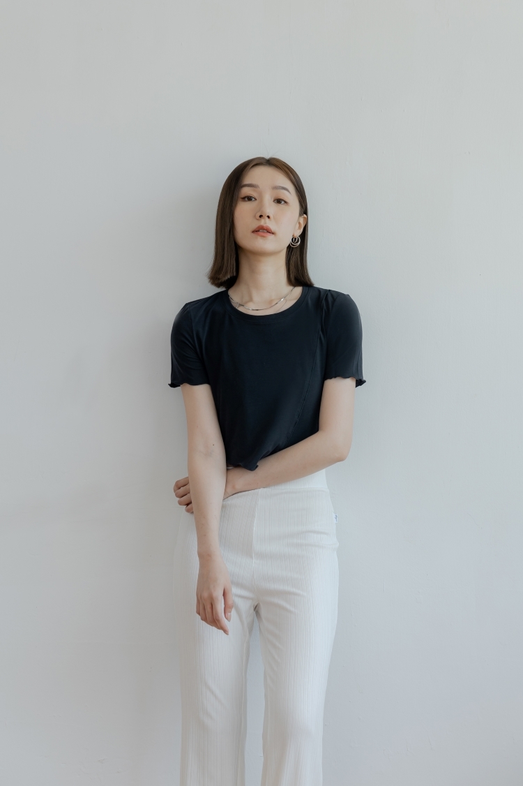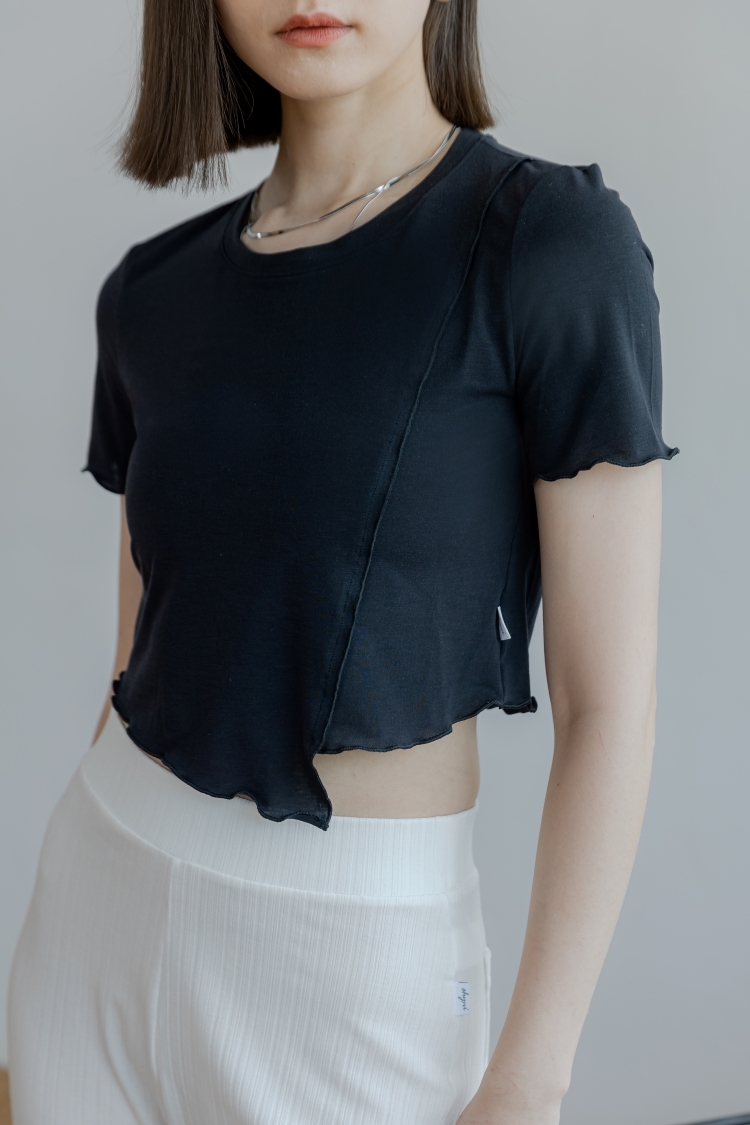 斜邊下擺密拷上衣- 黑