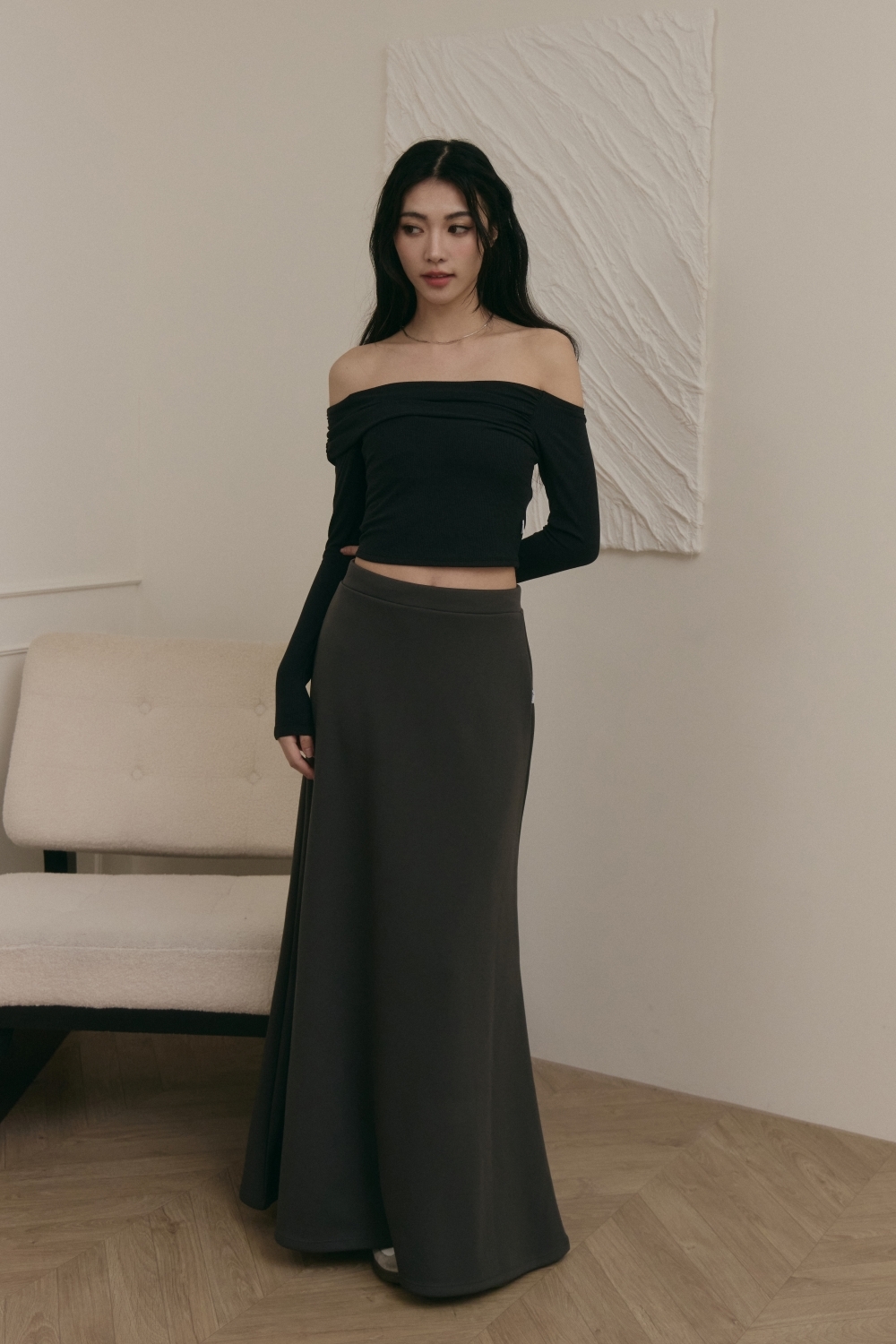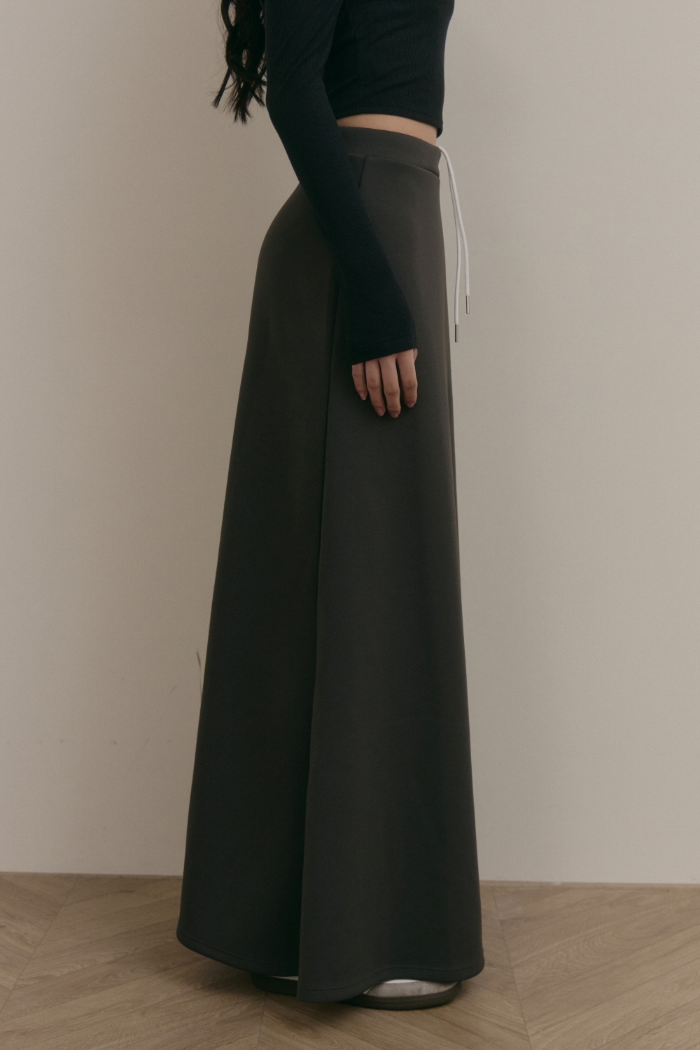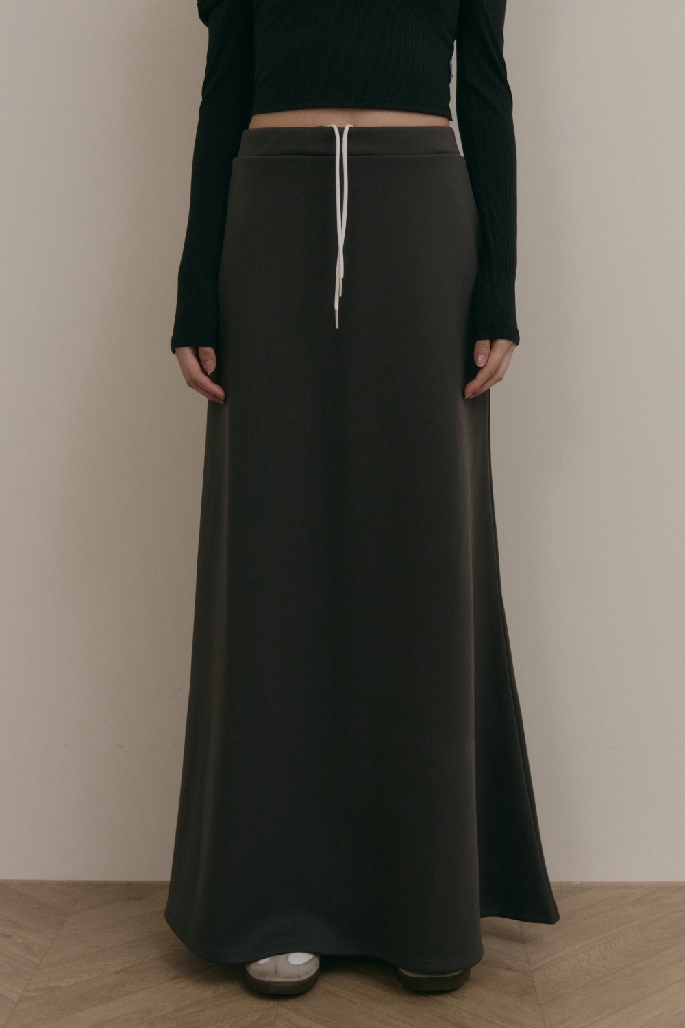 抽繩魚尾長裙- 深灰