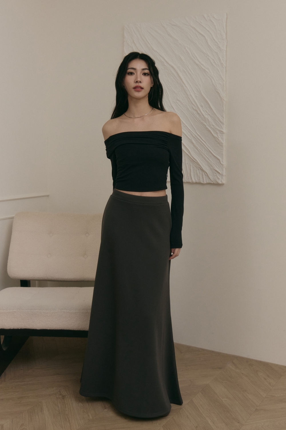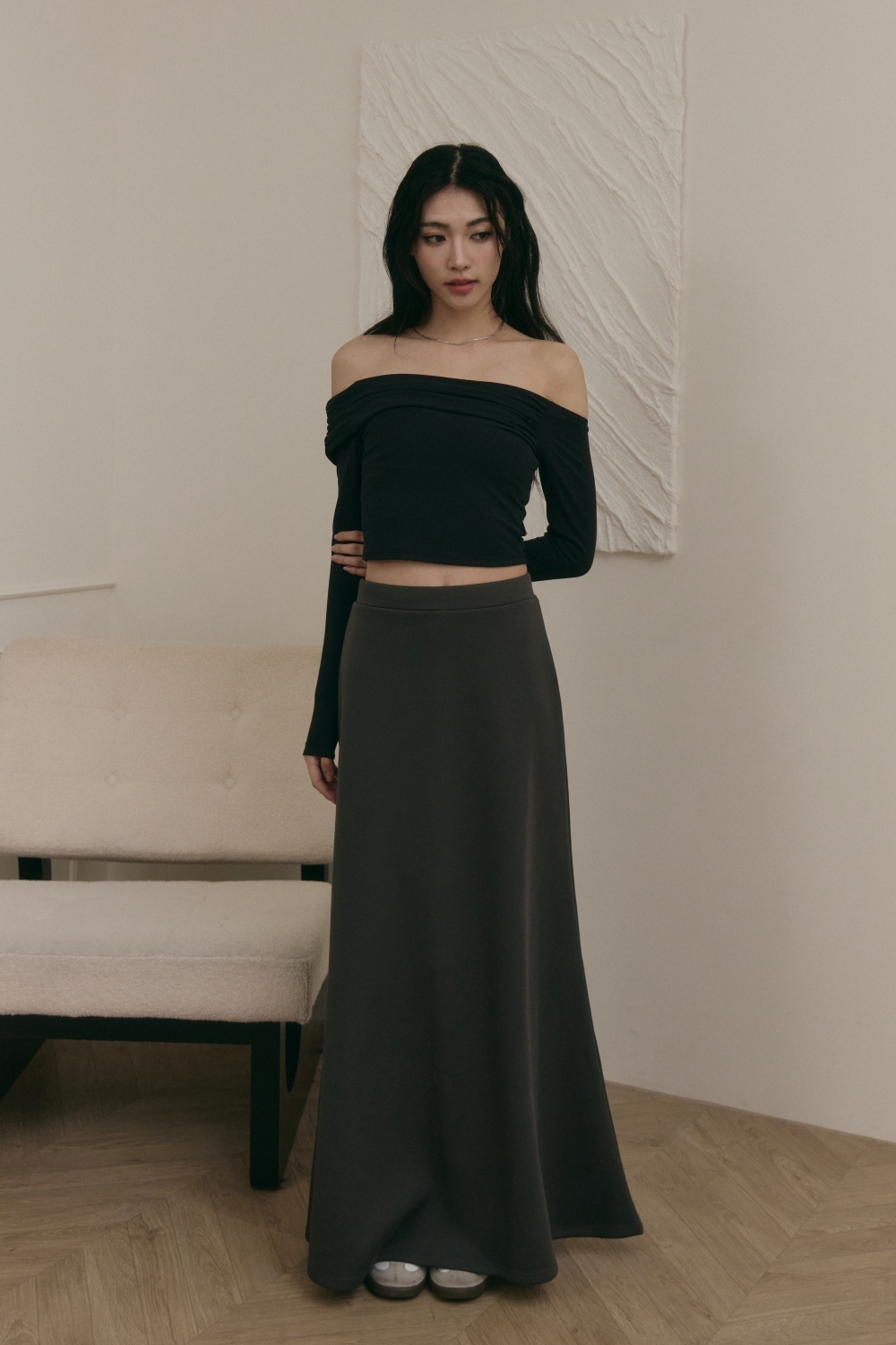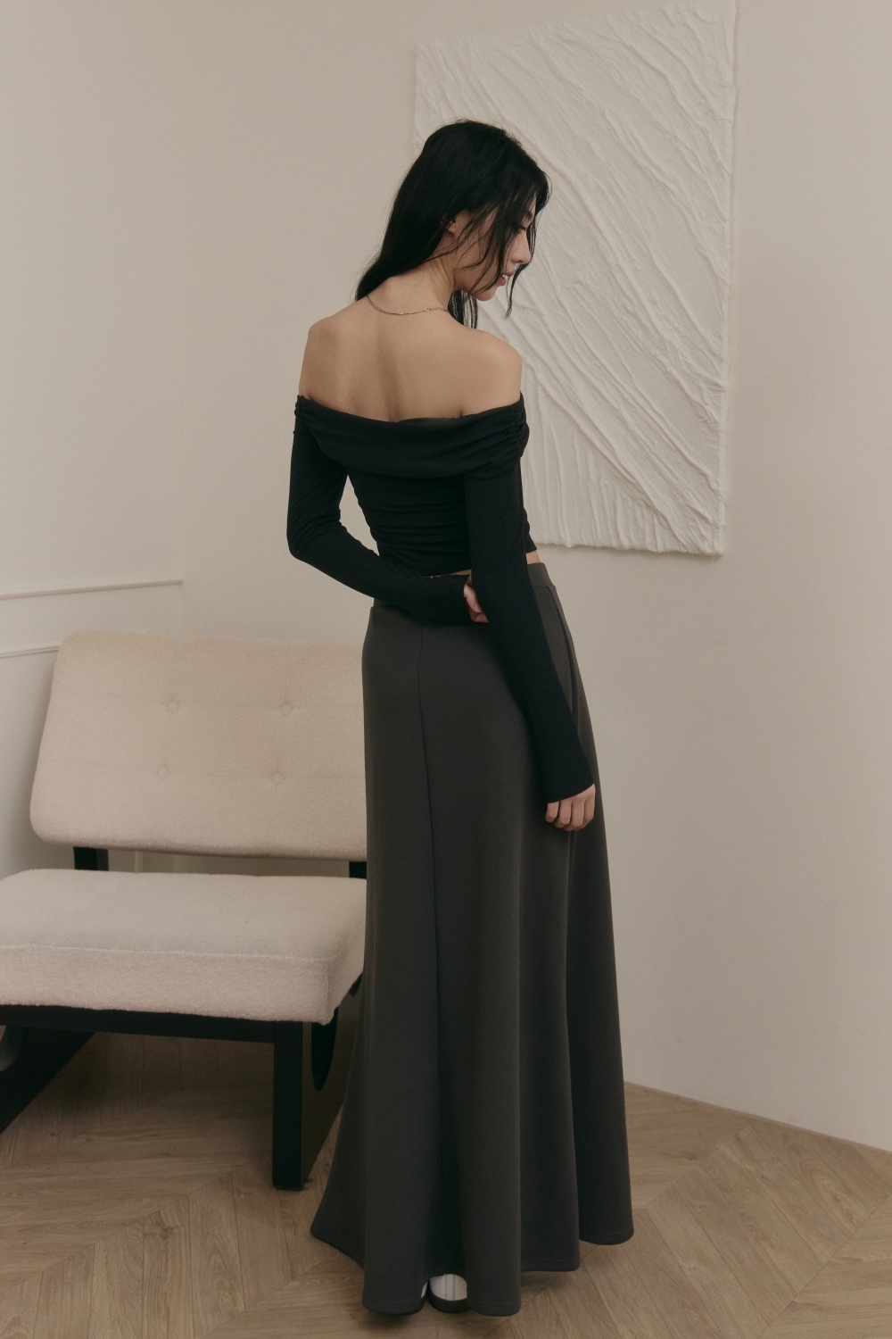 抽繩魚尾長裙- 深灰
