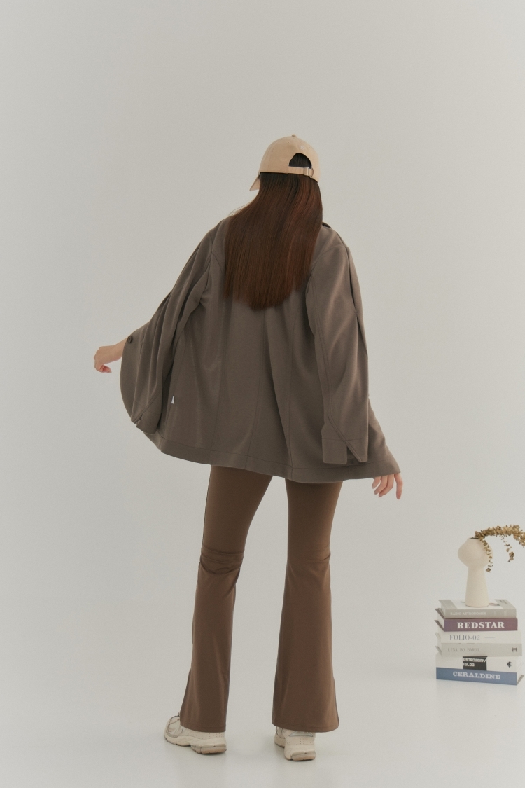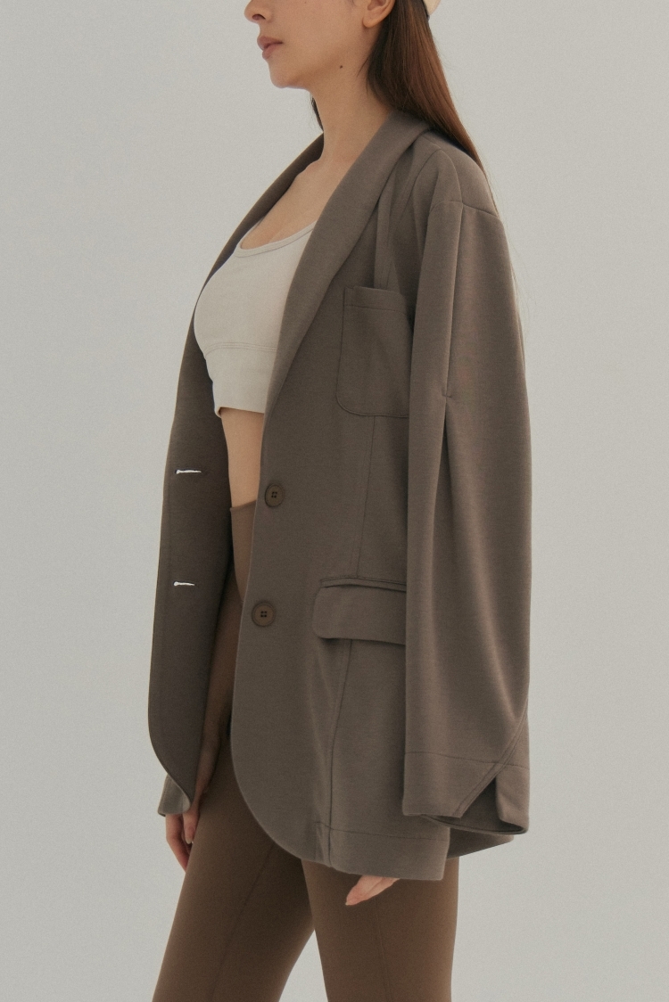 袖打摺寬鬆西裝外套- 咖啡