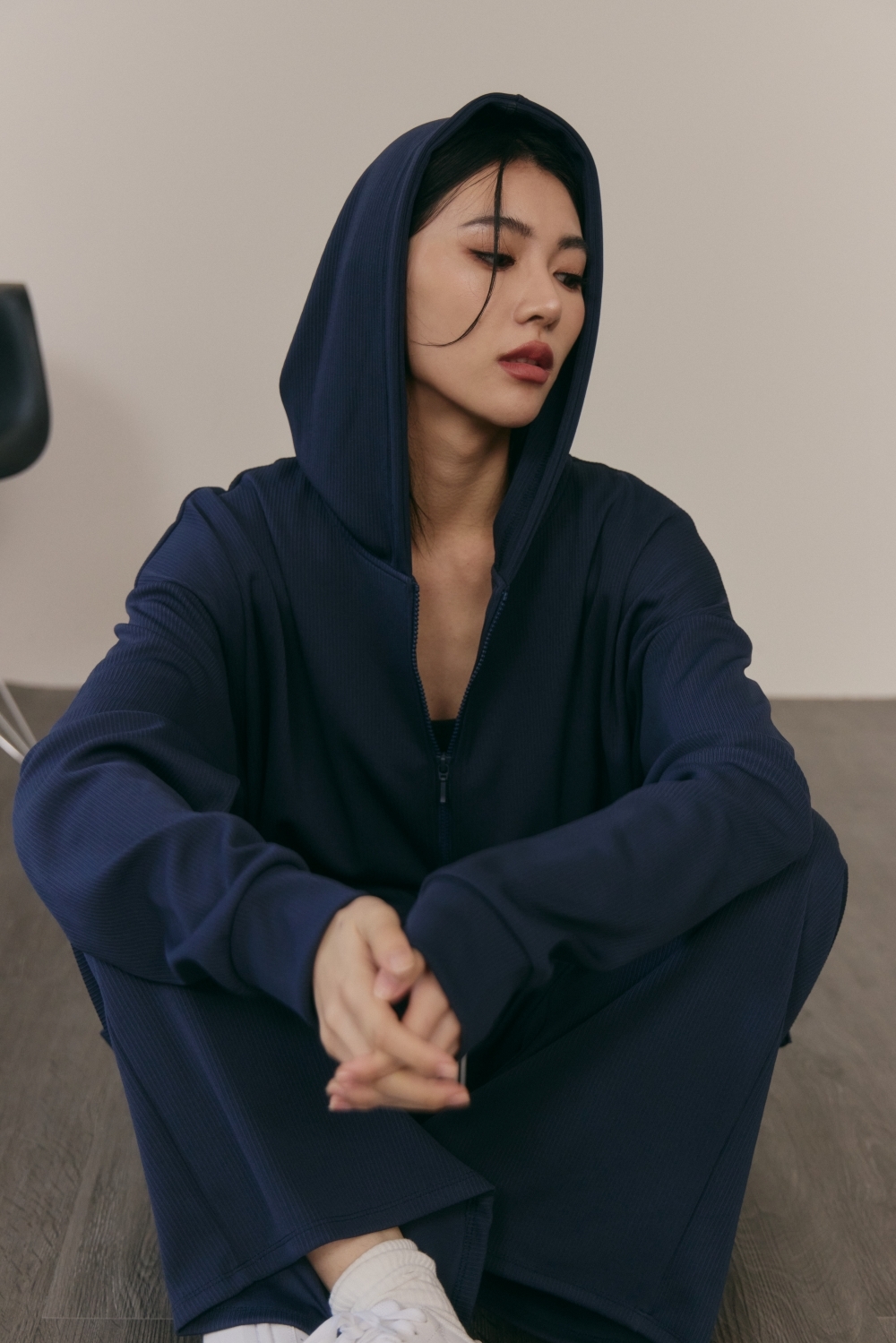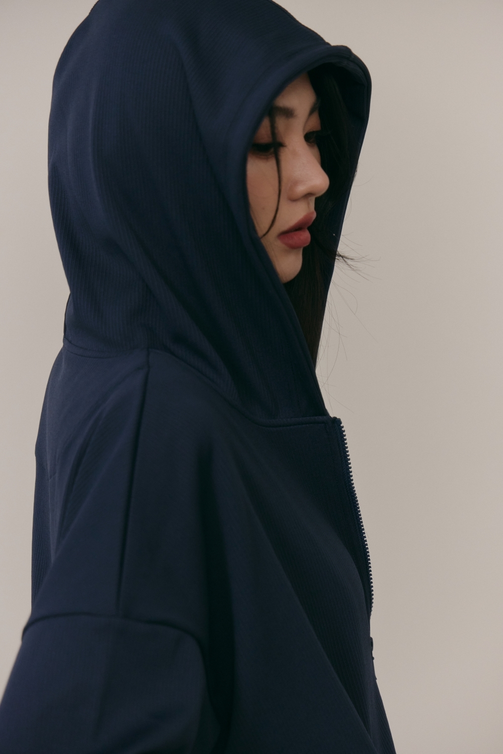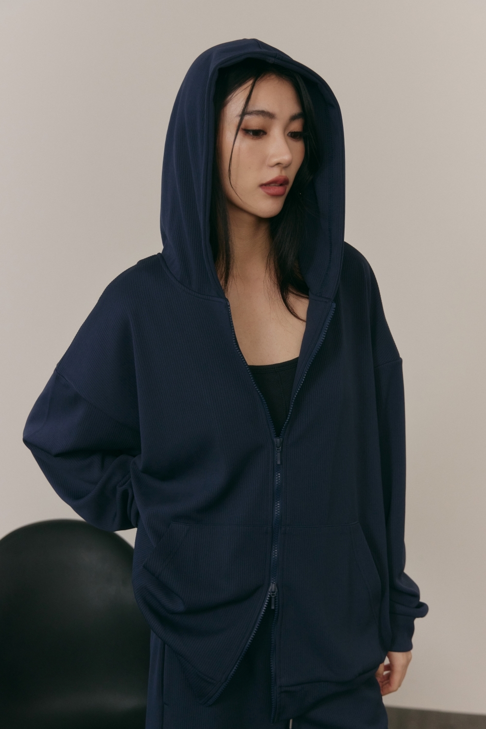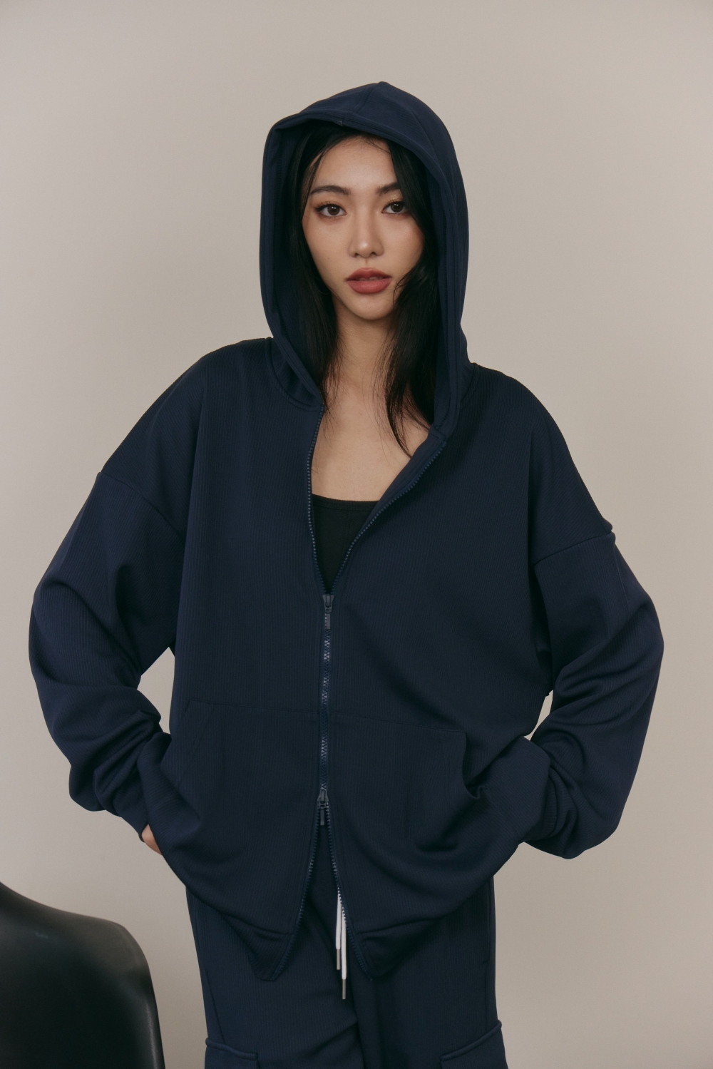 條紋寬鬆連帽外套(UNISEX)- 深藍