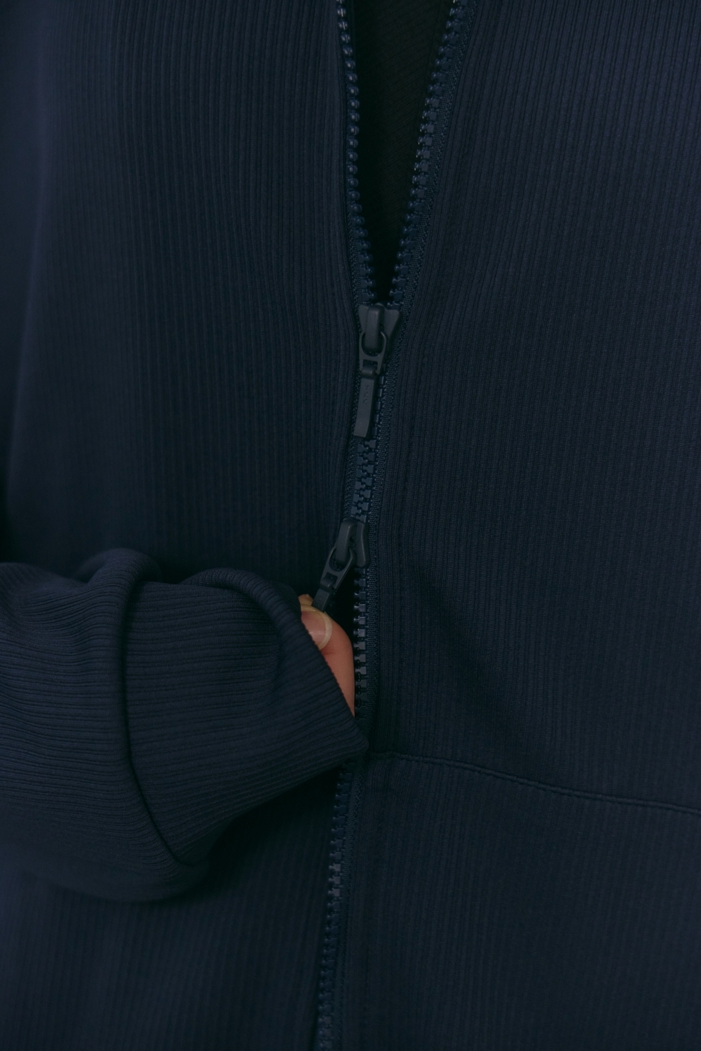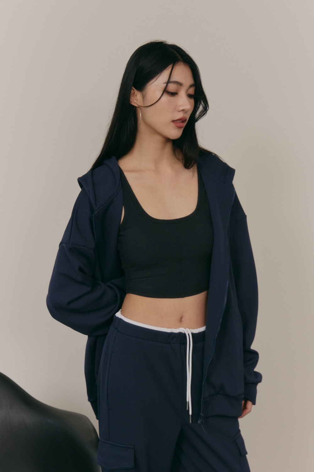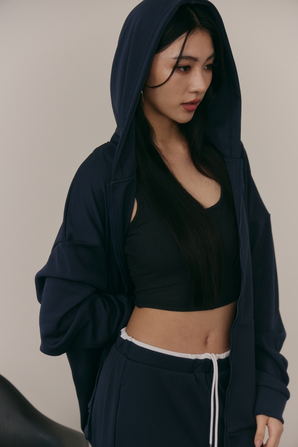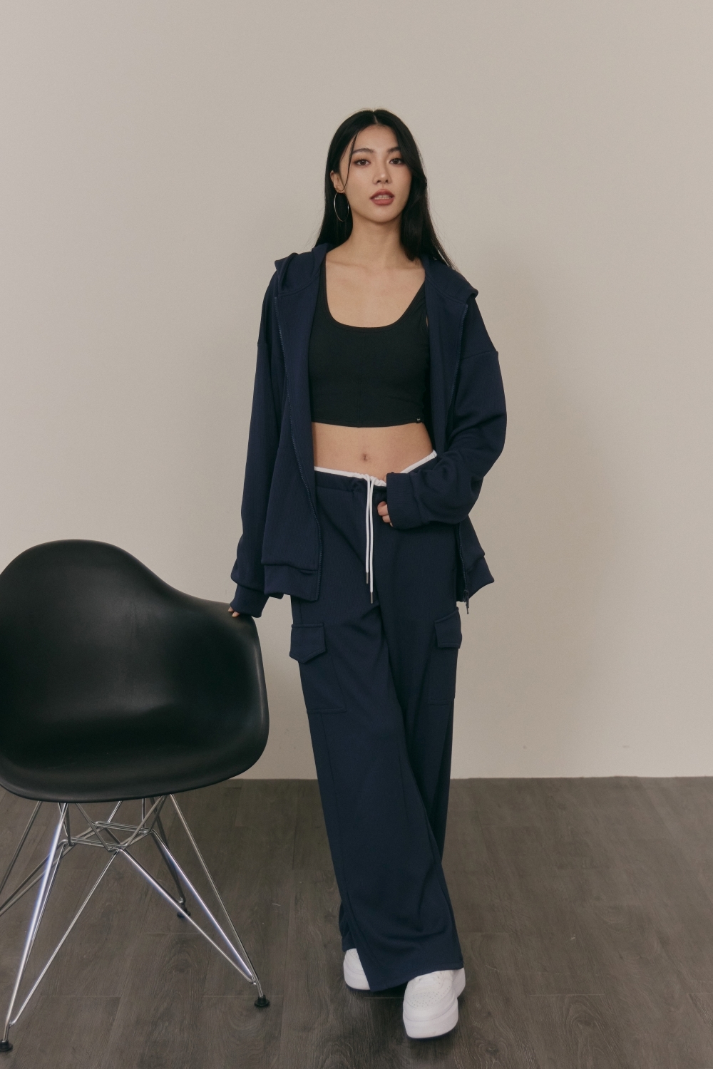 條紋寬鬆連帽外套(UNISEX)- 深藍