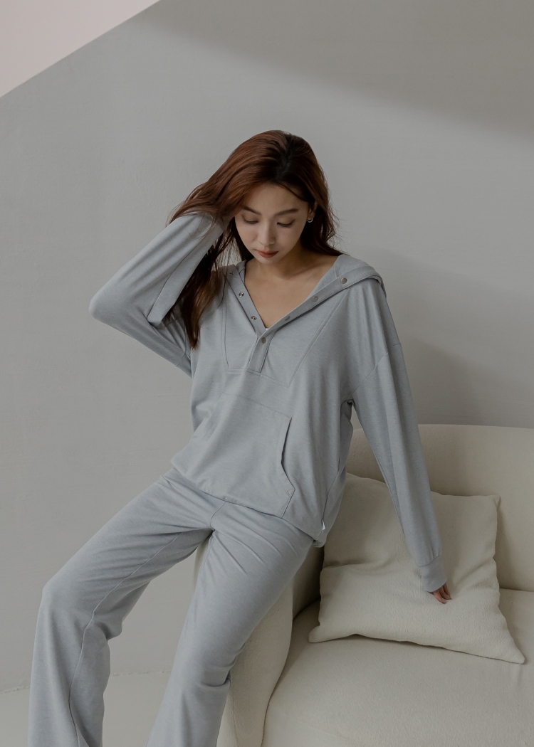 磨毛感寬鬆前開釦Hoodie- Light Grey Heather