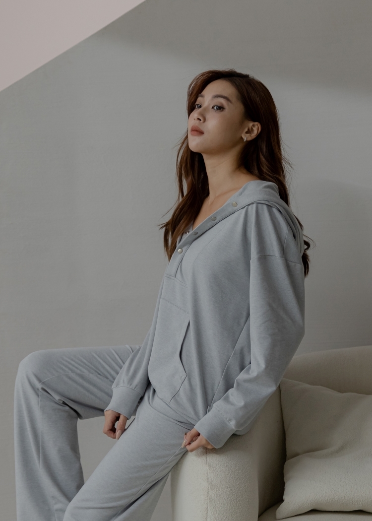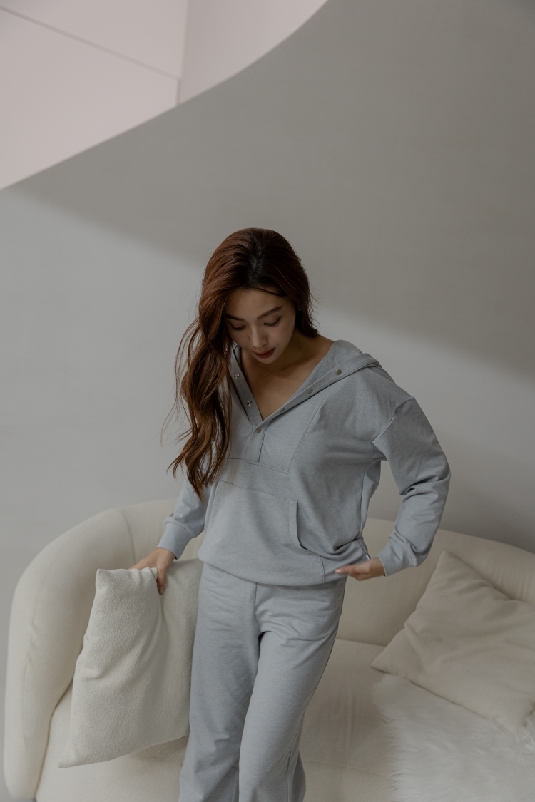 | All Day Wearing 磨毛感寬鬆前開釦Hoodie |