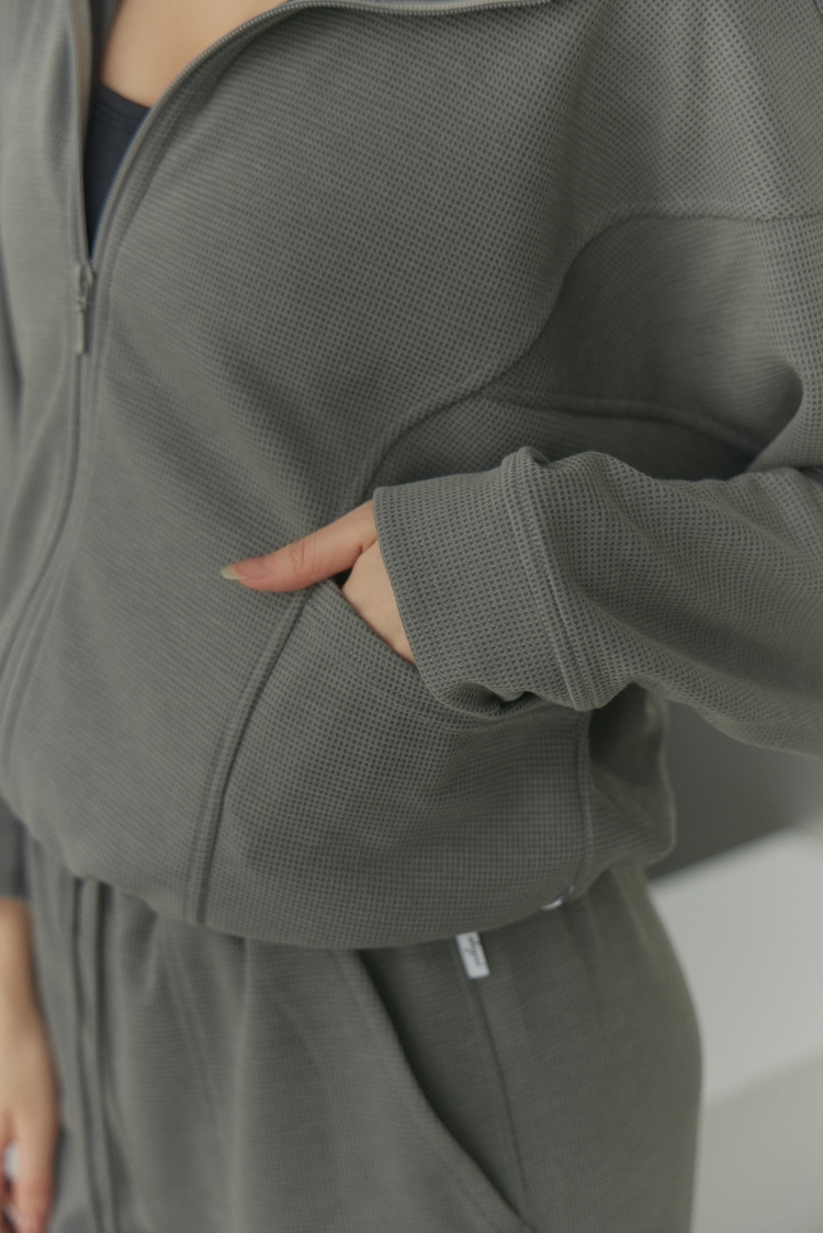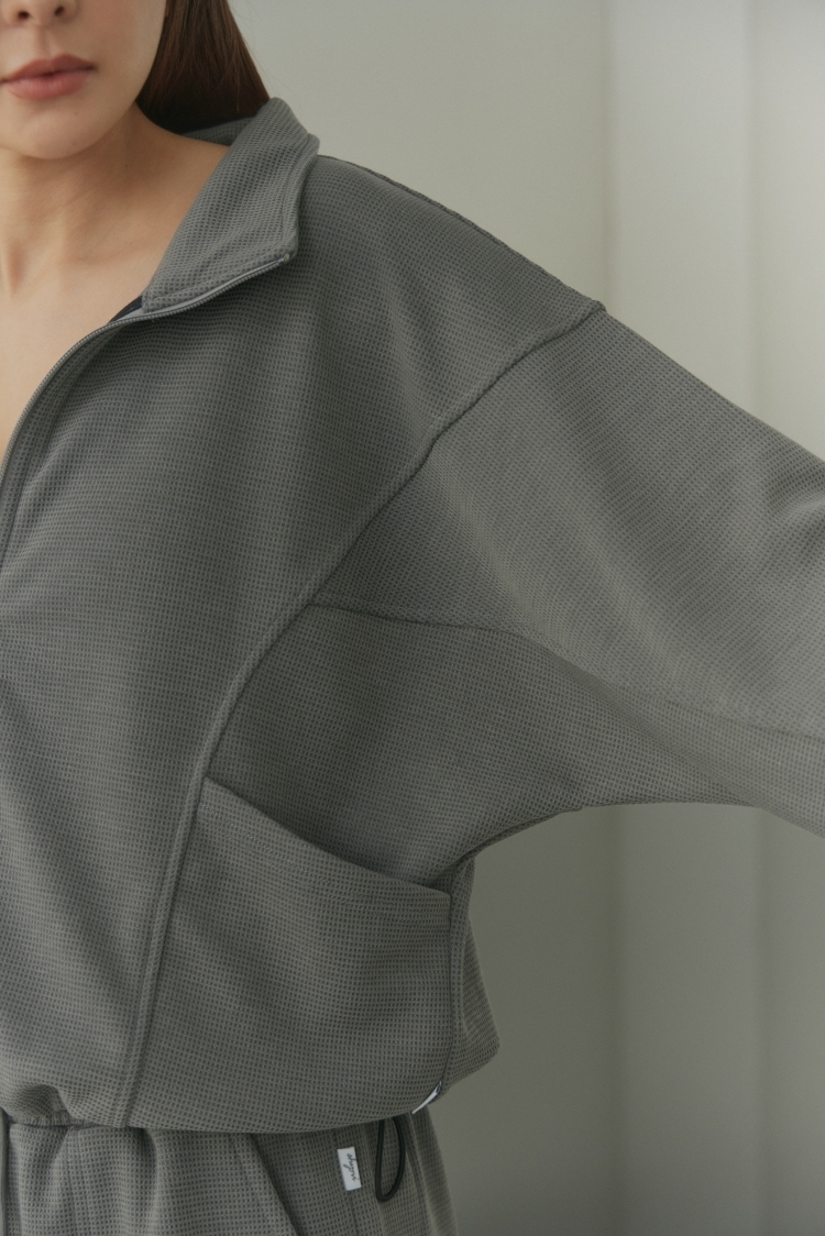 華夫格寬袖縮腰外套- 灰綠